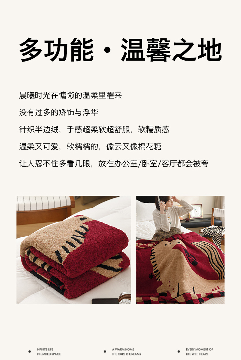 (总)瑞米家居 2026新款多功能半边绒盖毯毛毯毯子,呆萌星猫,朵朵绒,惊喜,空白格,奶huhu,暖fufu,慵懒猫-红,慵懒喵-黄,rich horse白,rich horse驼,熊猫-红,熊猫-灰,组合图仅供参考不可下单