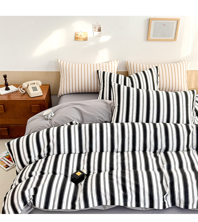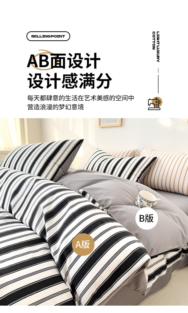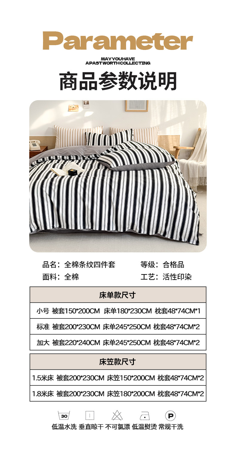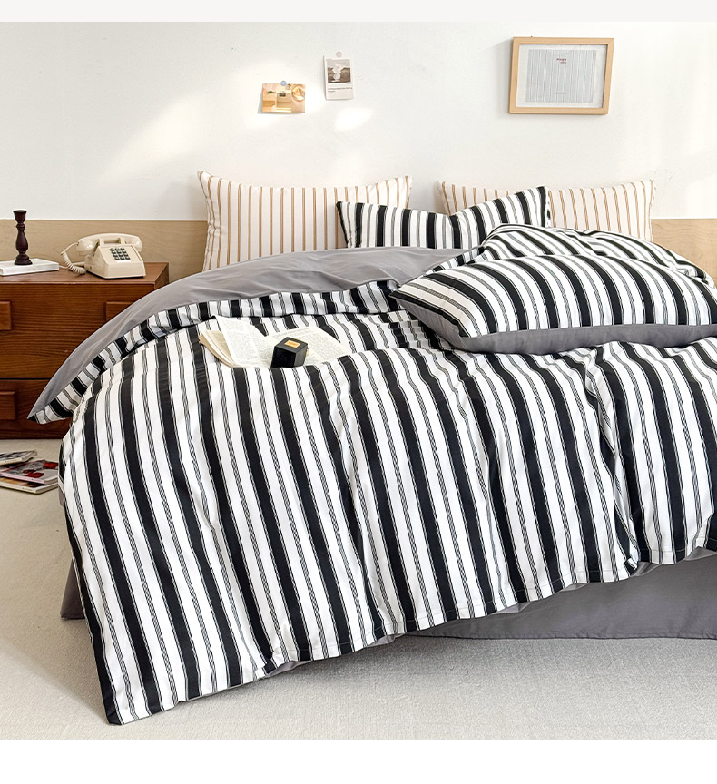 当前位置: 91家纺网 > 商品网购 > 床品套件 > 四件套 > 全棉普通四件套 > 合欢(原天一阁) 2026新款100%全棉纯棉13372简约时尚四件套 条纹黑