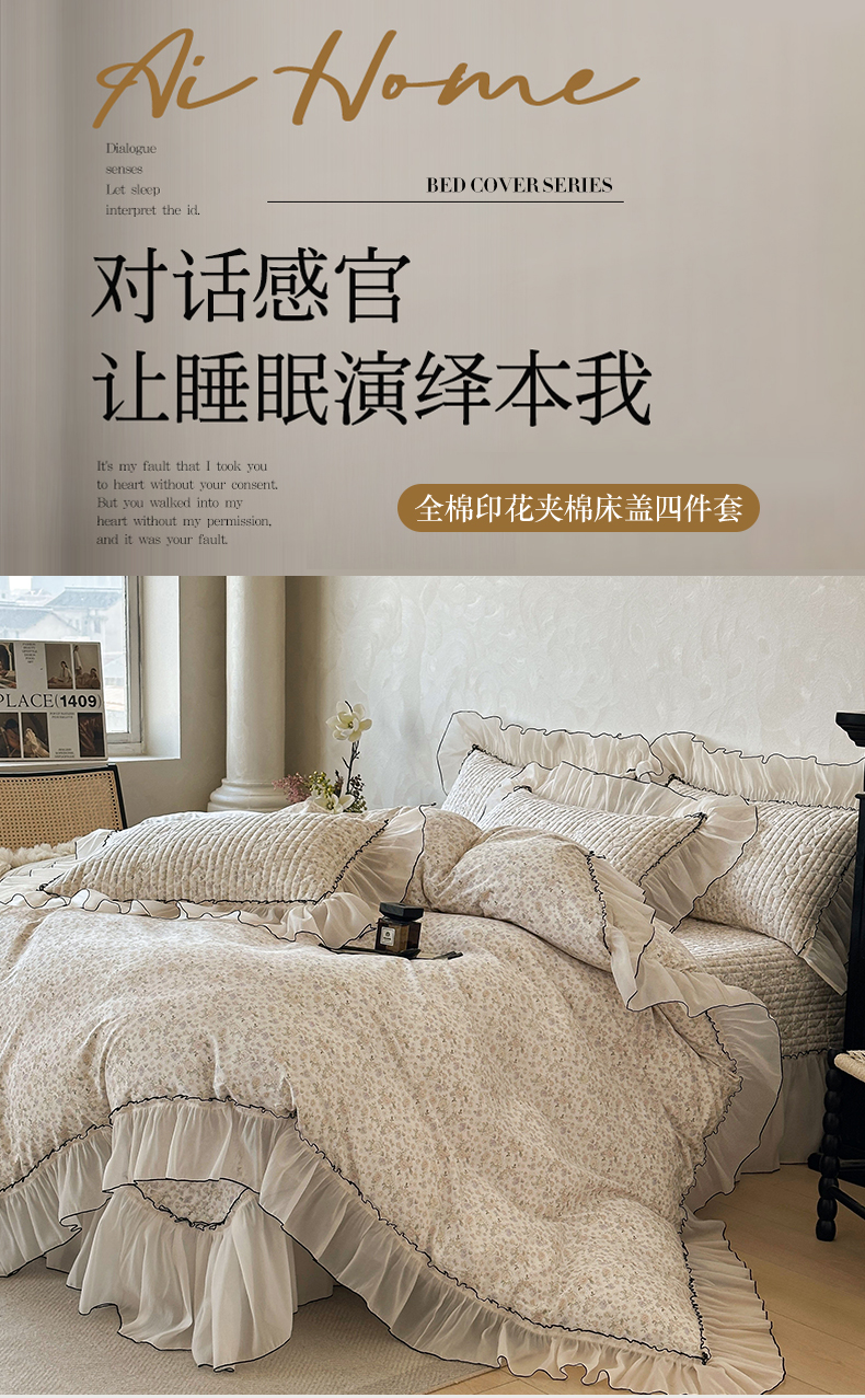 当前位置: 91家纺网 > 商品网购 > 床品套件 > 四件套 > 全棉普通四件套 > 宜凡家纺 2026新款全棉法式碎花床盖四件套(所有四件套价格不得低于供货价+60元出售) 云端花海