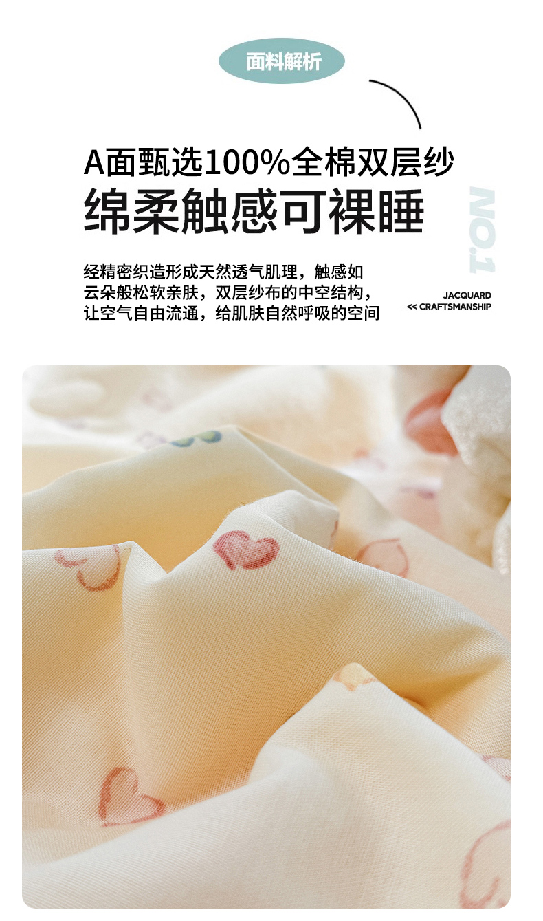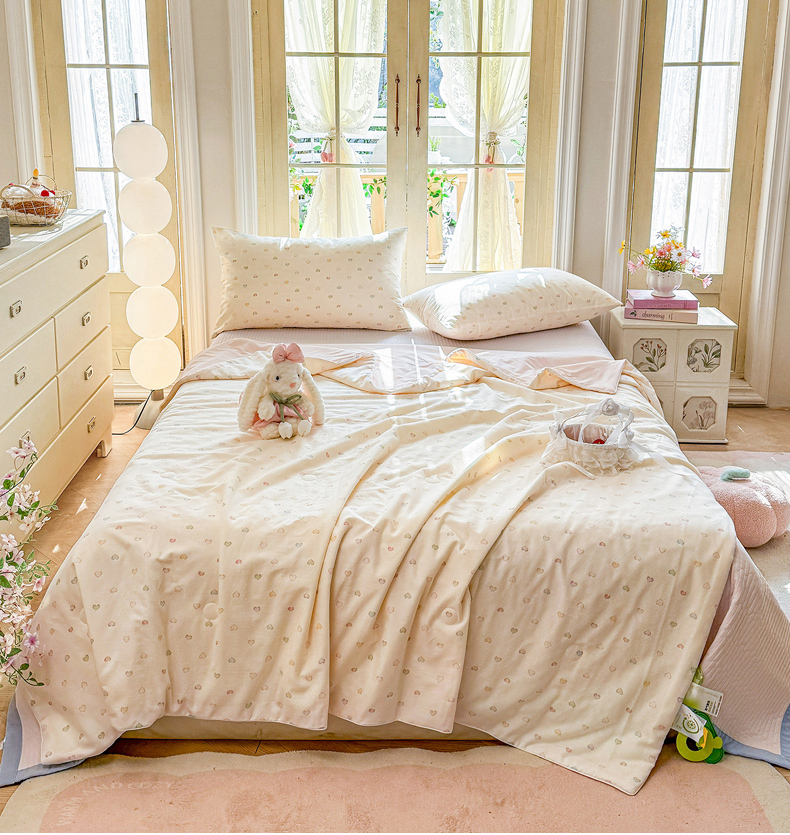 当前位置: 91家纺网 > 商品网购 > 床品套件 > 四件套 > 其它四件套 > 木楌家居 2026新款全棉纱布云感冰冰被床盖四件套系列 七彩爱心