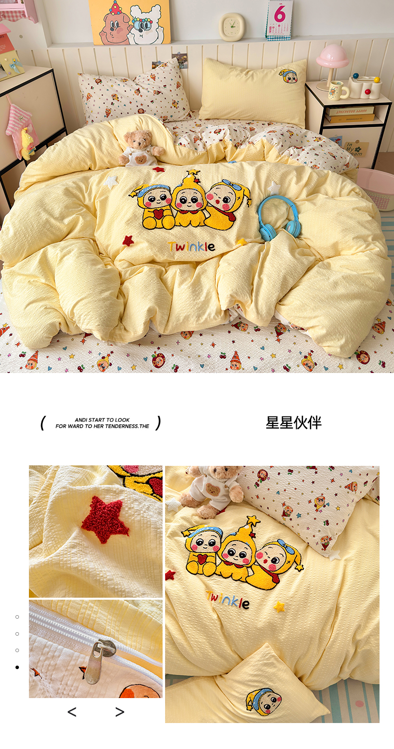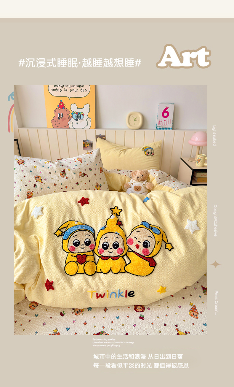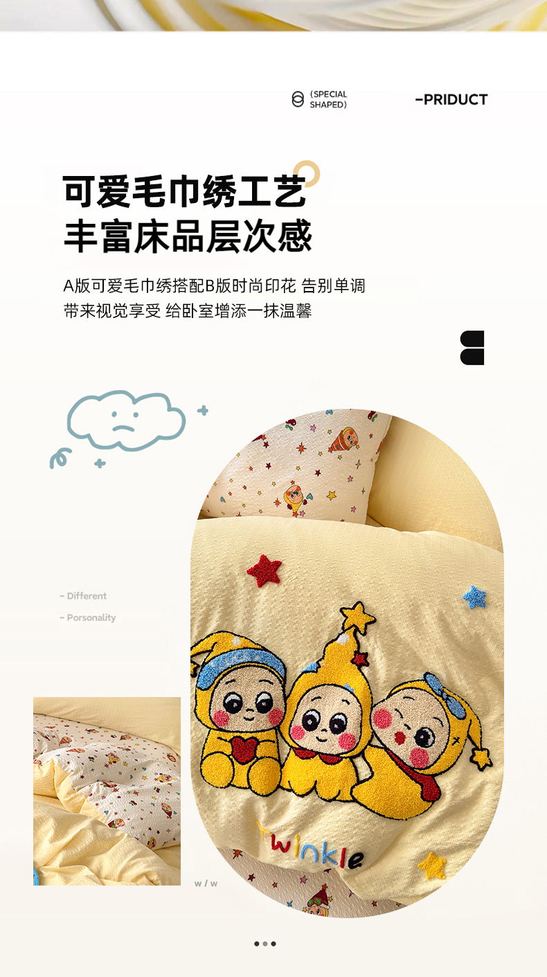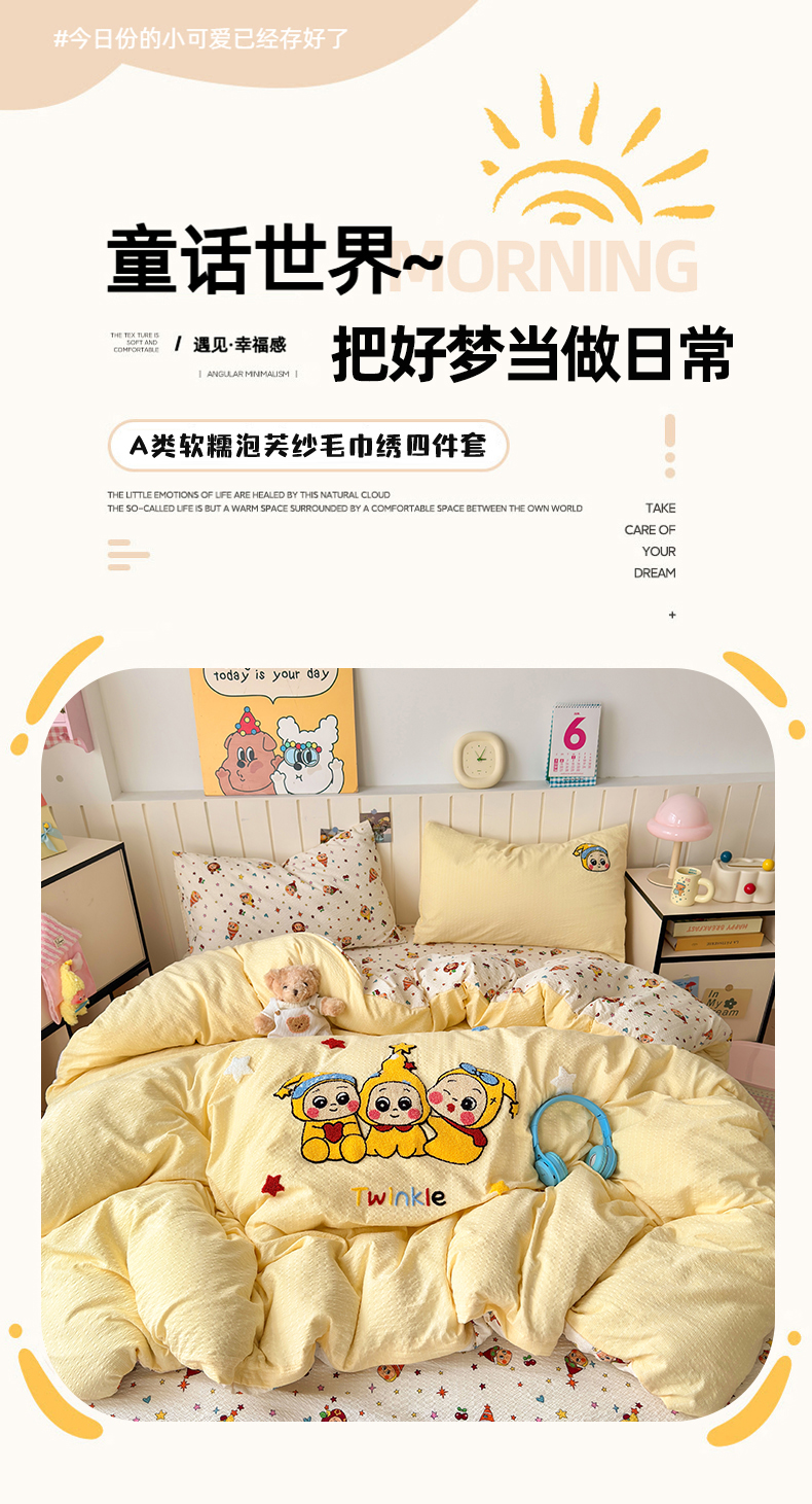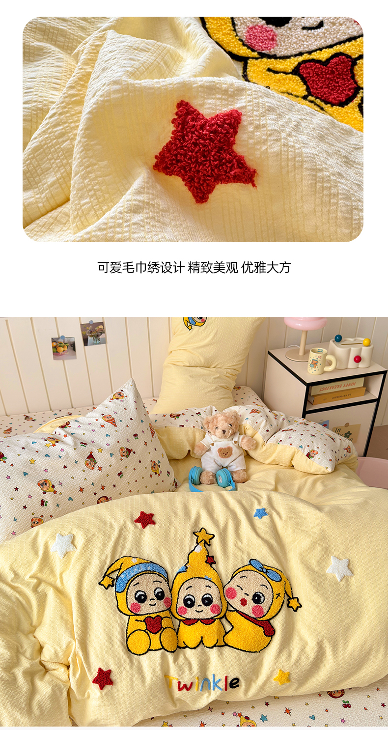 当前位置: 91家纺网 > 商品网购 > 床品套件 > 四件套 > 毛巾绣四件套 > 橙意 2026新款高克重A类泡芙纱毛巾绣四件套 星星伙伴