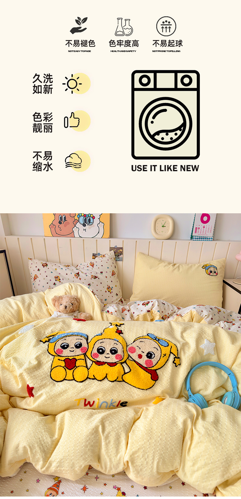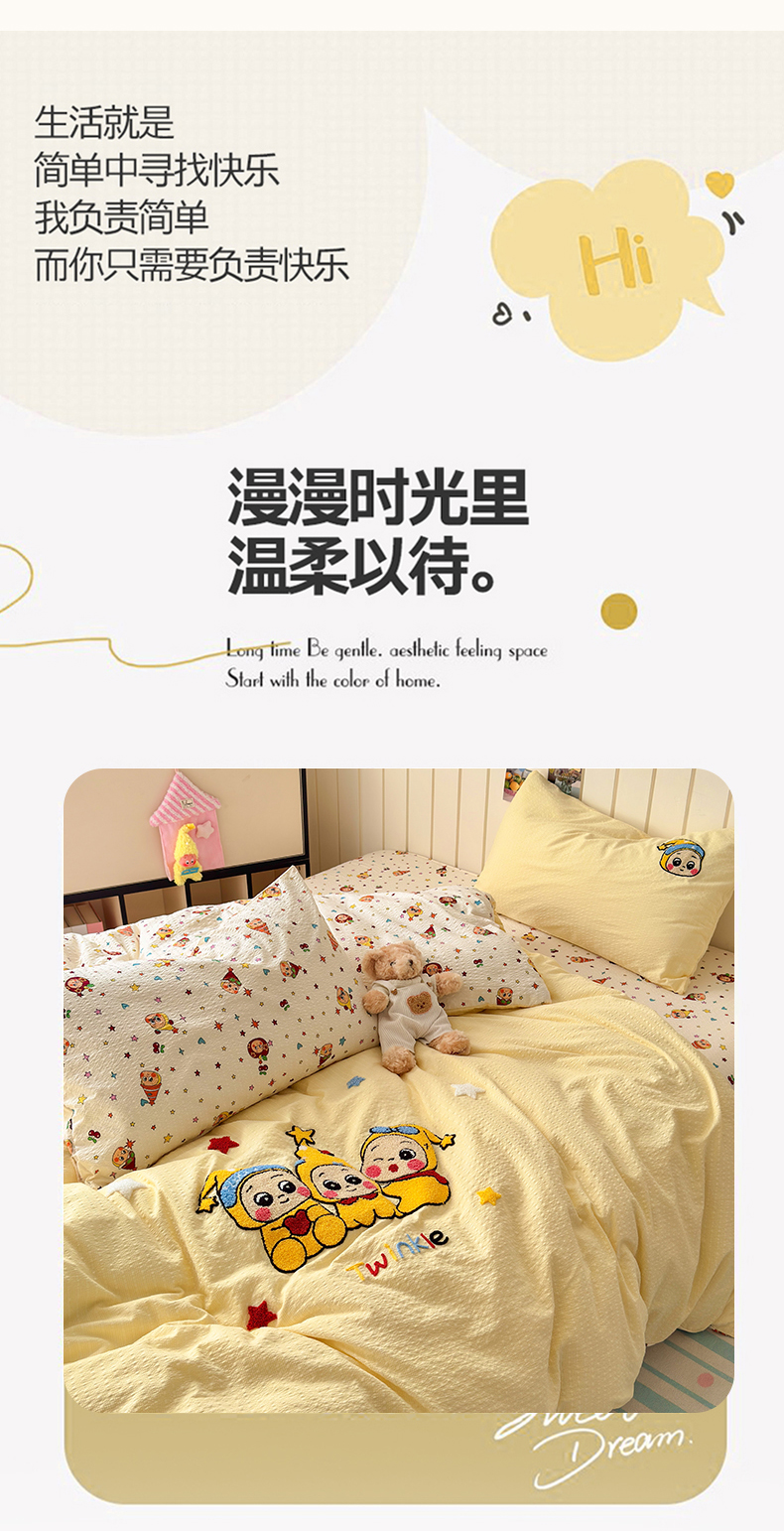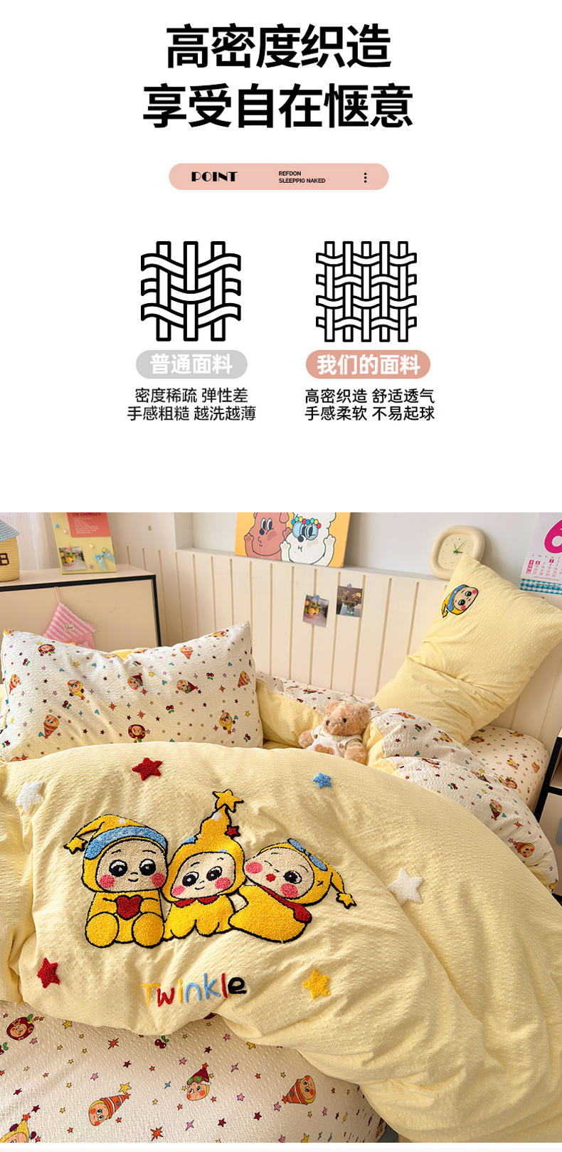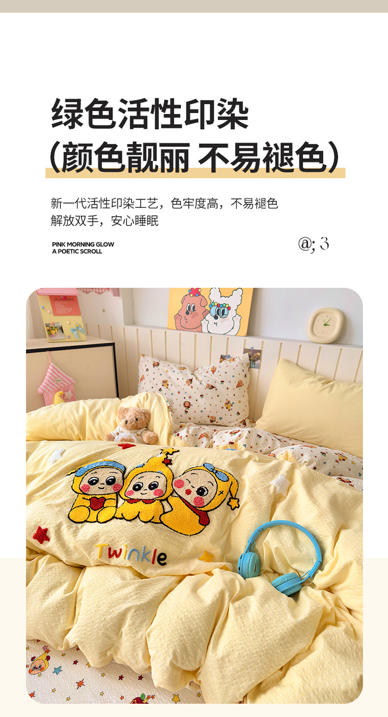 当前位置: 91家纺网 > 商品网购 > 床品套件 > 四件套 > 毛巾绣四件套 > 橙意 2026新款高克重A类泡芙纱毛巾绣四件套 星星伙伴