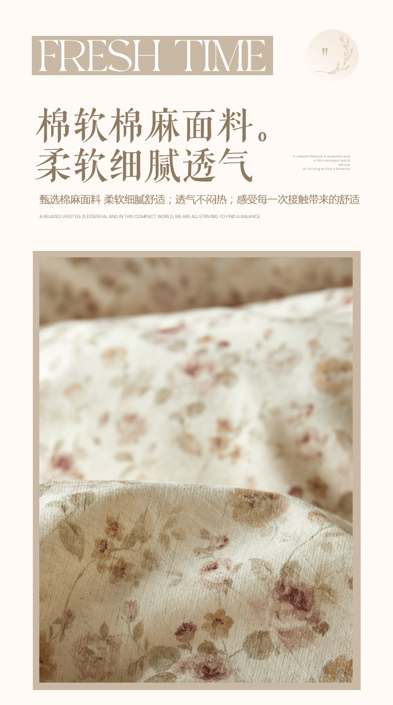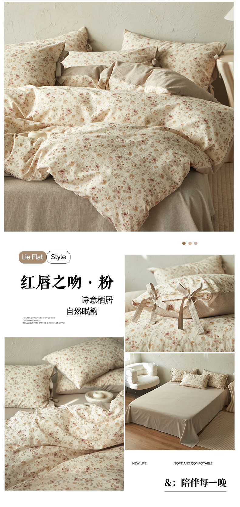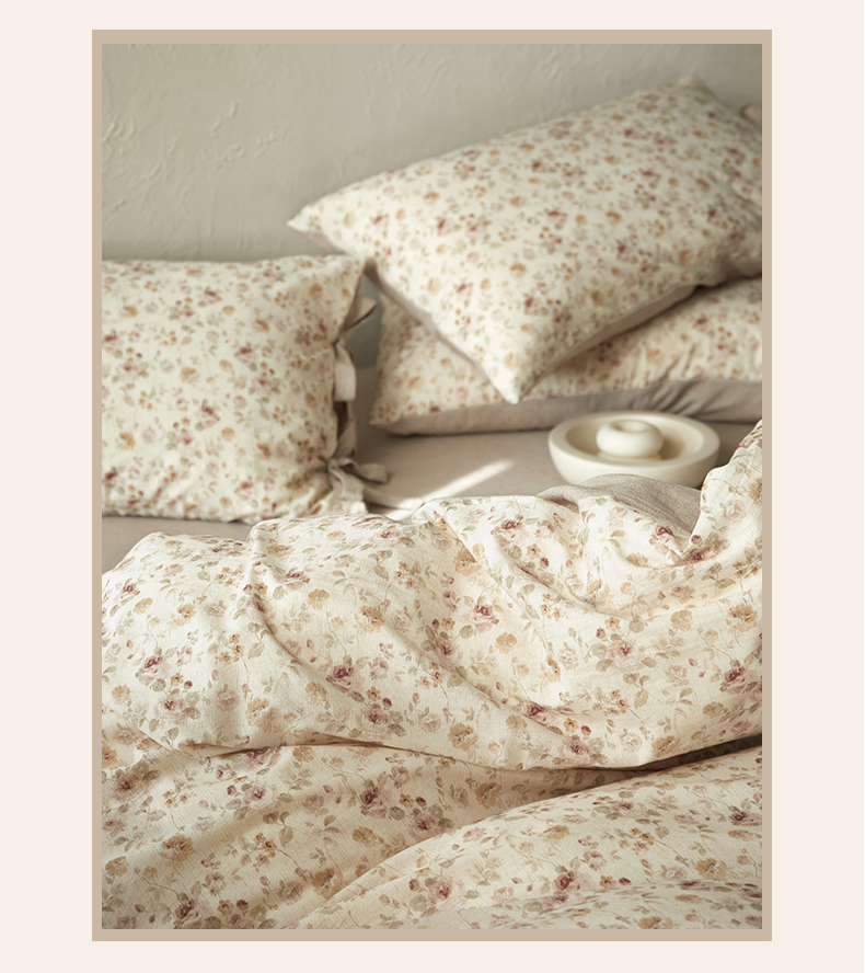 (总)绫韵家纺 2026春夏新款A类印花棉麻蝴蝶结四件套,大地微风,法式风情·蓝,红唇之吻·粉,清风蝶鱼·绿,秋野拾花·粉