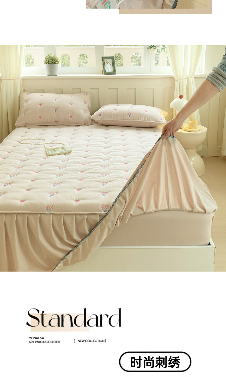 (总)尊康家纺(原磊科) 2026新款奶昔棉抗菌夹棉床裙款床笠-花语系列,花语-薄荷绿,花语-绅士灰,花语-天空蓝,花语-香槟,花语-粉玉,花语-米白
