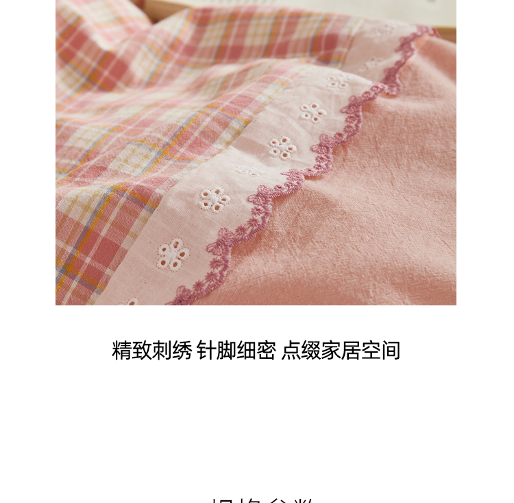 商品名称:喜四方 2026新款100%全棉纯棉色织水洗棉花边工艺款四件套-系列一 小确幸-粉