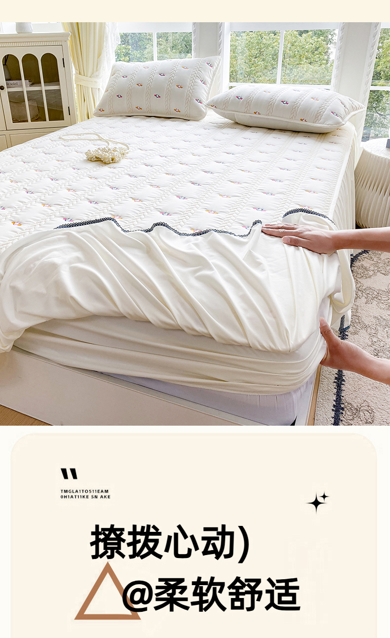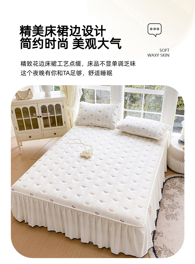 (总)尊康家纺(原磊科) 2026新款奶昔棉抗菌夹棉床裙款床笠-花语系列,花语-薄荷绿,花语-绅士灰,花语-天空蓝,花语-香槟,花语-粉玉,花语-米白