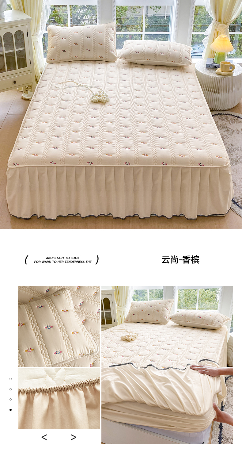 (总)尊康家纺(原磊科) 2026新款奶昔棉抗菌夹棉床裙款床笠-云尚系列,云尚-薄荷绿,云尚-绅士灰,云尚-天空蓝,云尚-香槟,云尚-粉玉,云尚-米白