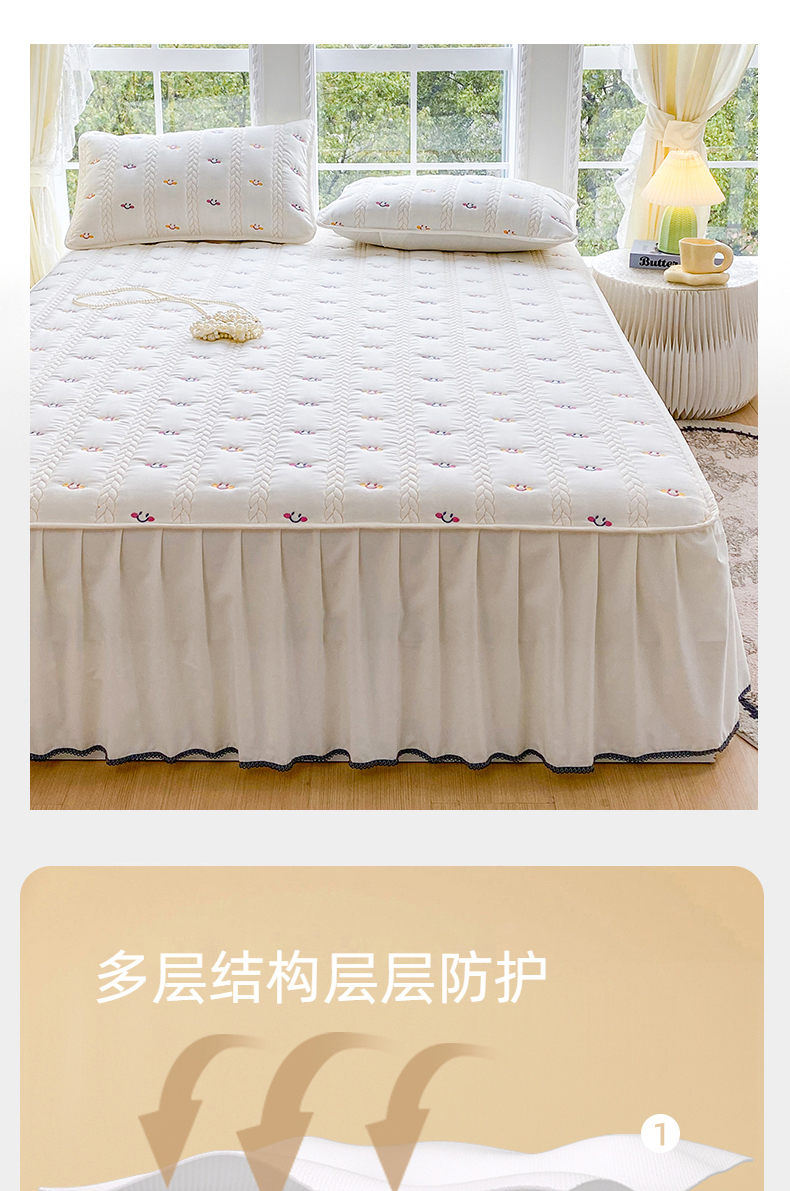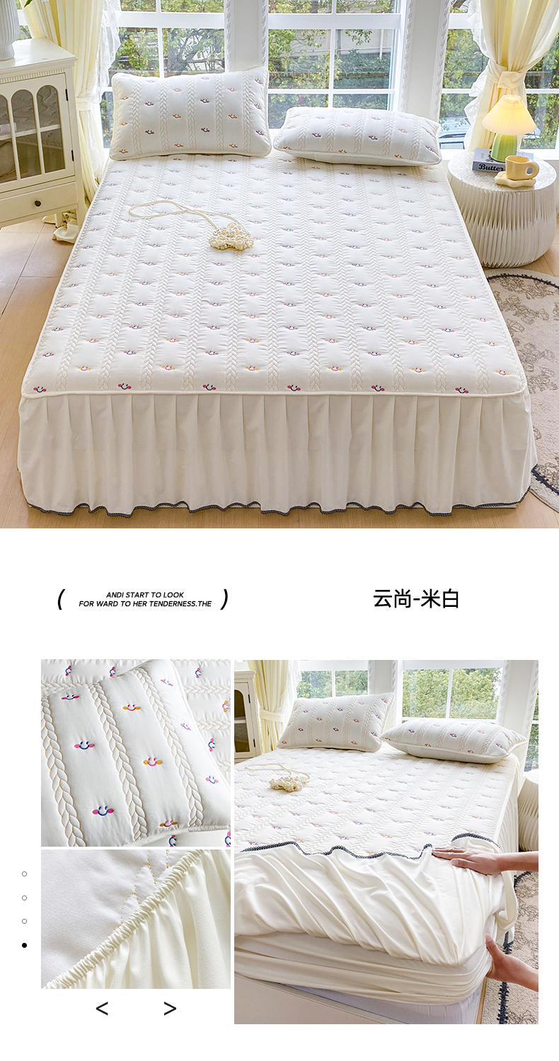 尊康家纺(原磊科) 2026新款奶昔棉抗菌夹棉床裙款床笠-云尚系列 云尚-米白