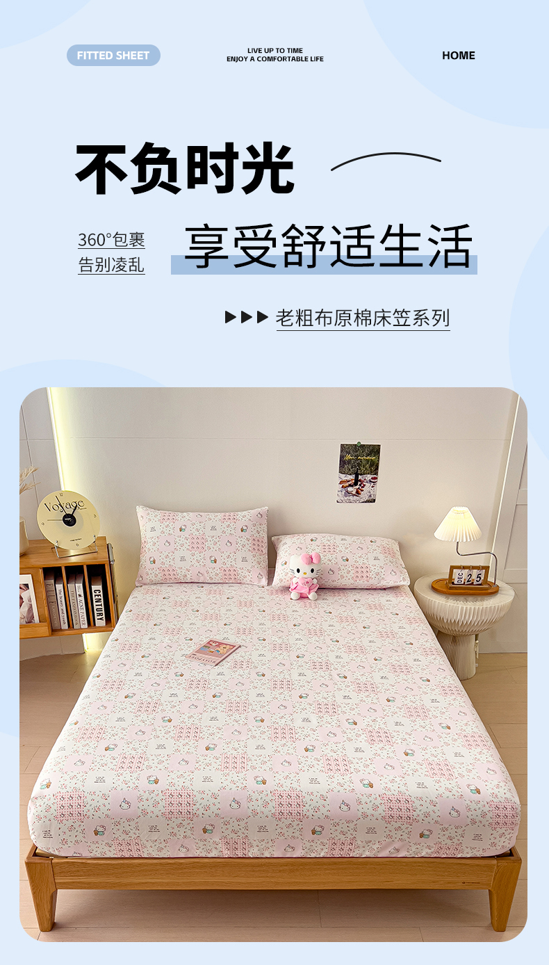 芃成家纺 2026新款老粗布单床笠 hello猫