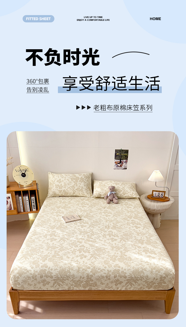 • 91家纺网 家纺一手货源 找家纺 芃成家纺 2026新款老粗布单床笠 叶花洲