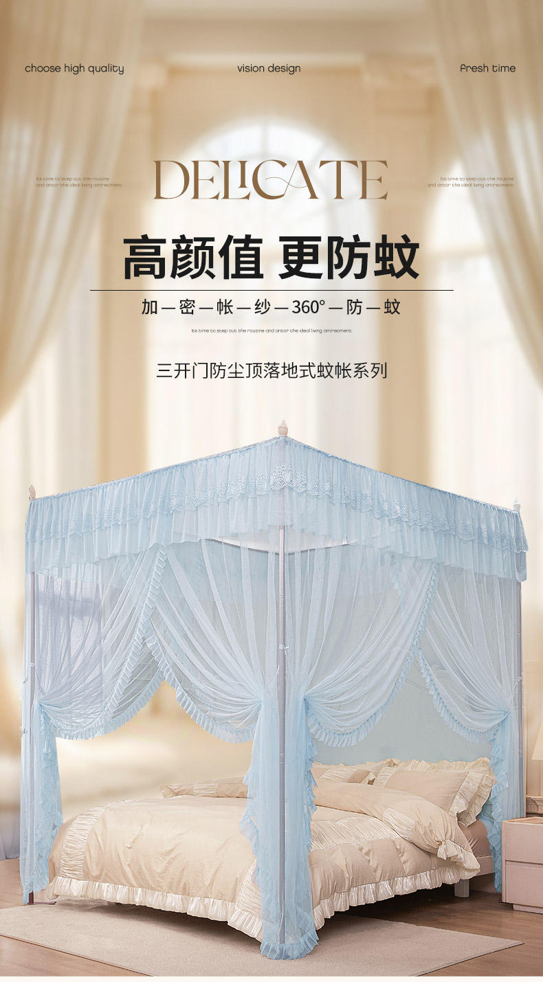 当前位置: 91家纺网 > 商品网购 > 床上用品 > 蚊帐 > 海虹蚊帐 2026新款2603款三开门一体防尘顶落地蚊帐 浅蓝
