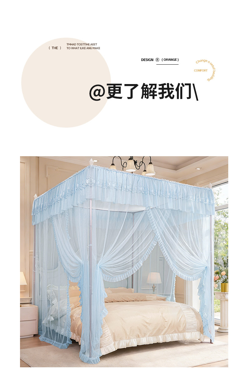 • 91家纺网 家纺一手货源 找家纺 (总)海虹蚊帐 2026新款2601外穿杆三开U型门一体防尘顶加密纱回底床笠款防摔蚊帐,彩虹蓝,幸运灰,幸运蓝,字母灰,字母咖