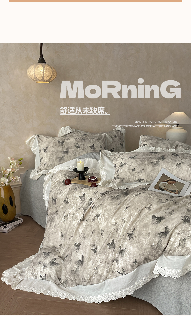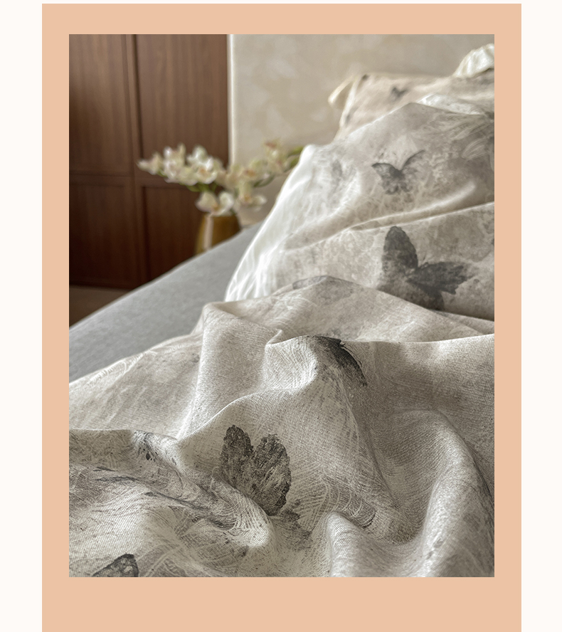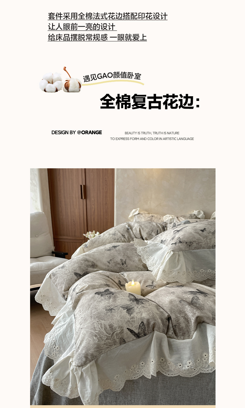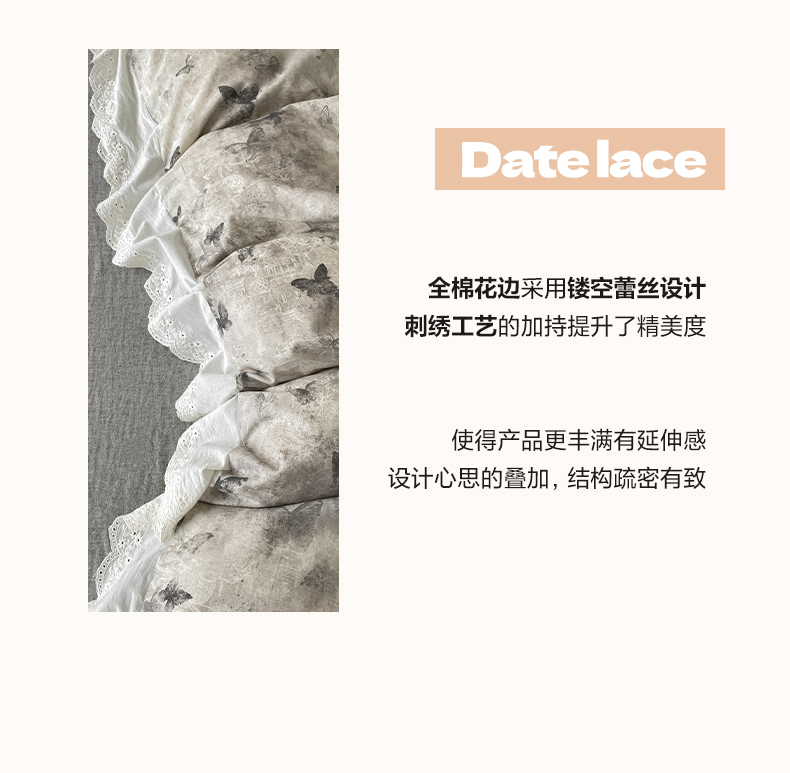 当前位置: 91家纺网 > 商品网购 > 床品套件 > 四件套 > 其它四件套 > 莱登卡奴 2026新款A类棉麻数码印花25%麻75%棉法式复古花边四件套 蝶影黑
