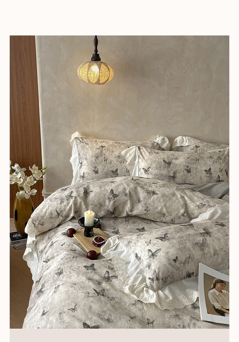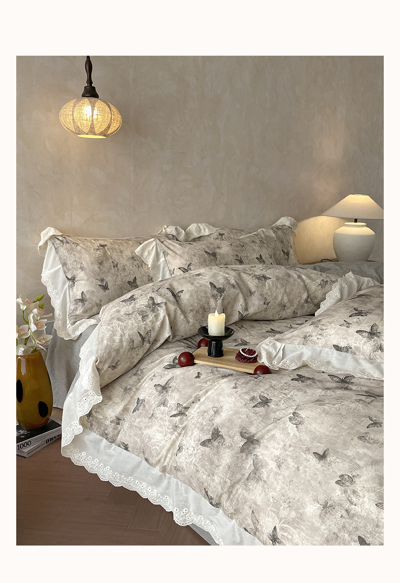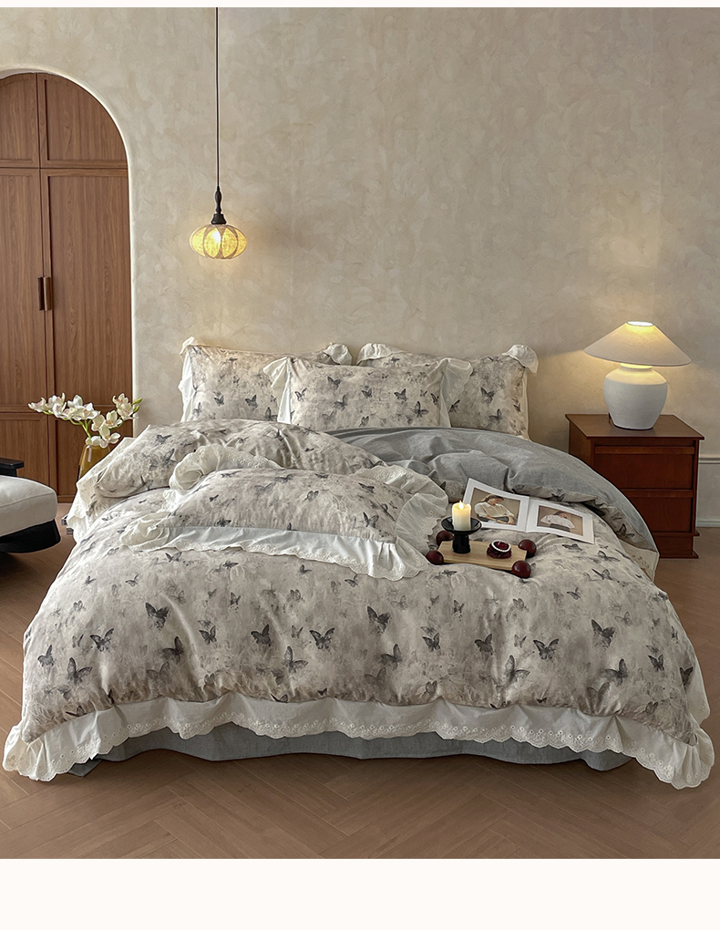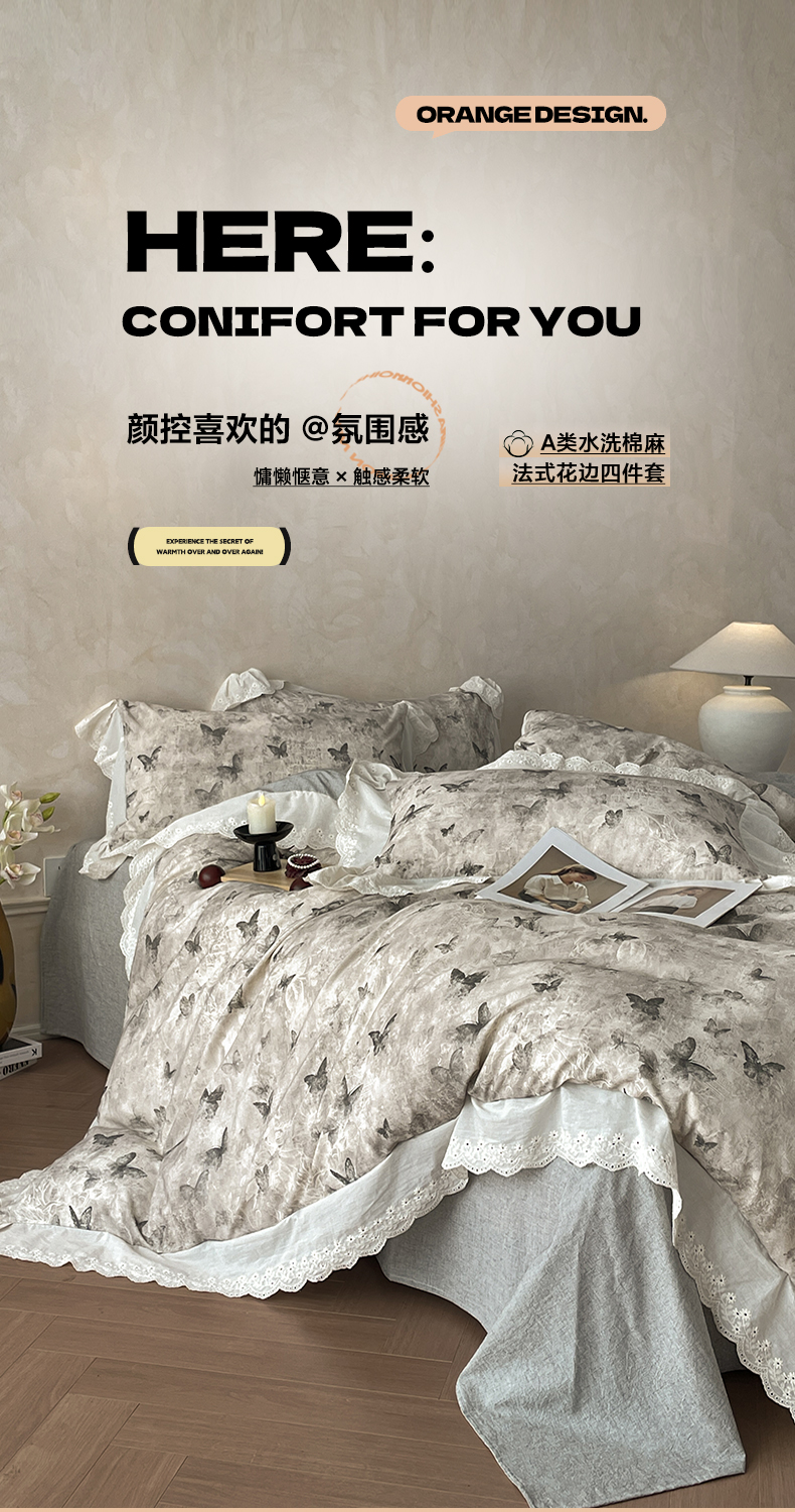 当前位置: 91家纺网 > 商品网购 > 床品套件 > 四件套 > 其它四件套 > 莱登卡奴 2026新款A类棉麻数码印花25%麻75%棉法式复古花边四件套 蝶影黑