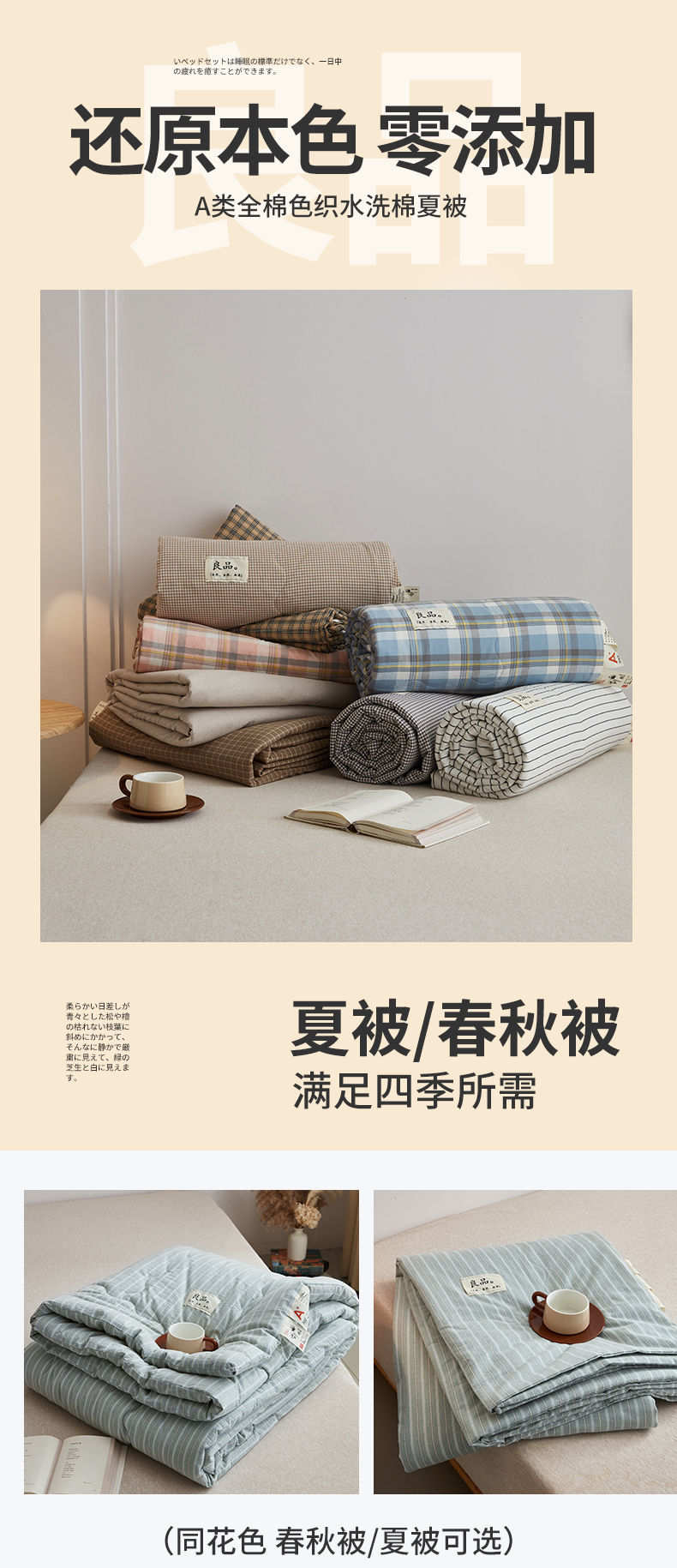 (总)尊妙被业 2026新款全棉色织水洗棉春秋被夏被-叠拍,春野-咖,灰细条,乐事-兰,乐事-绿,蜜格-灰,蜜格-米,莫妮-兰,莫妮-玉,沐妍-黄,千鸟格-灰,千鸟格-驼,童话-粉,晚晴-红,晚晴-咖