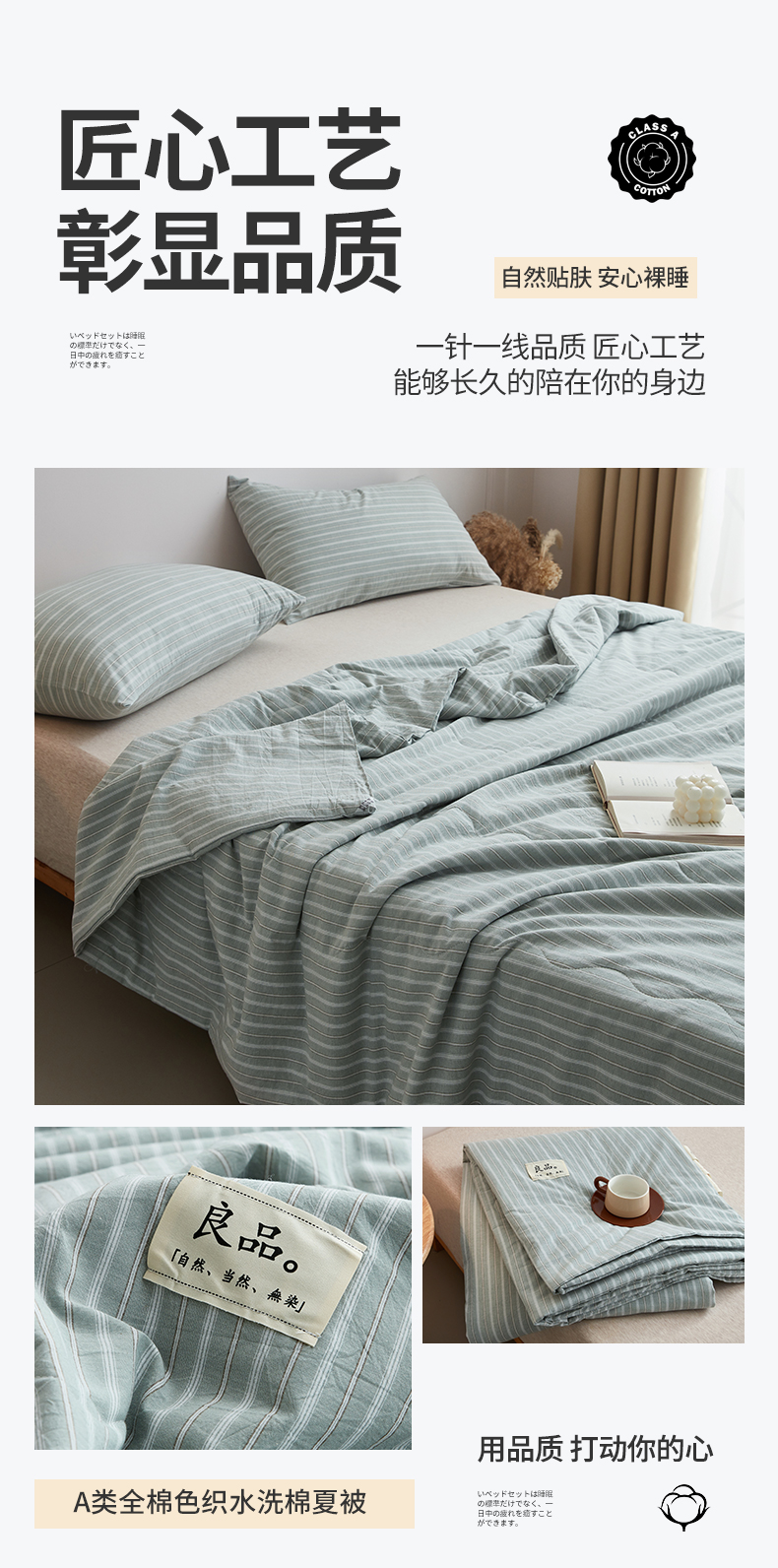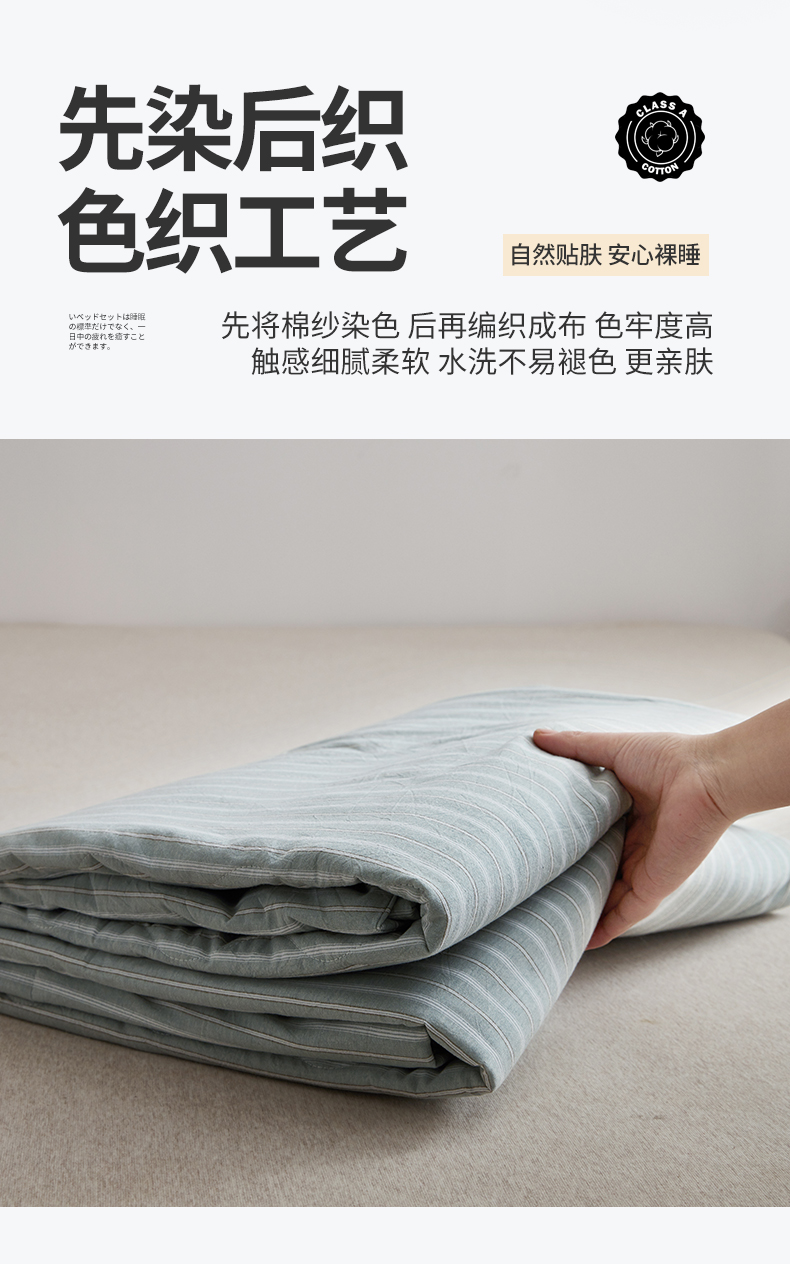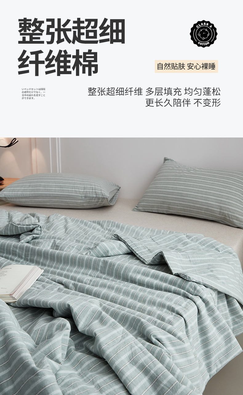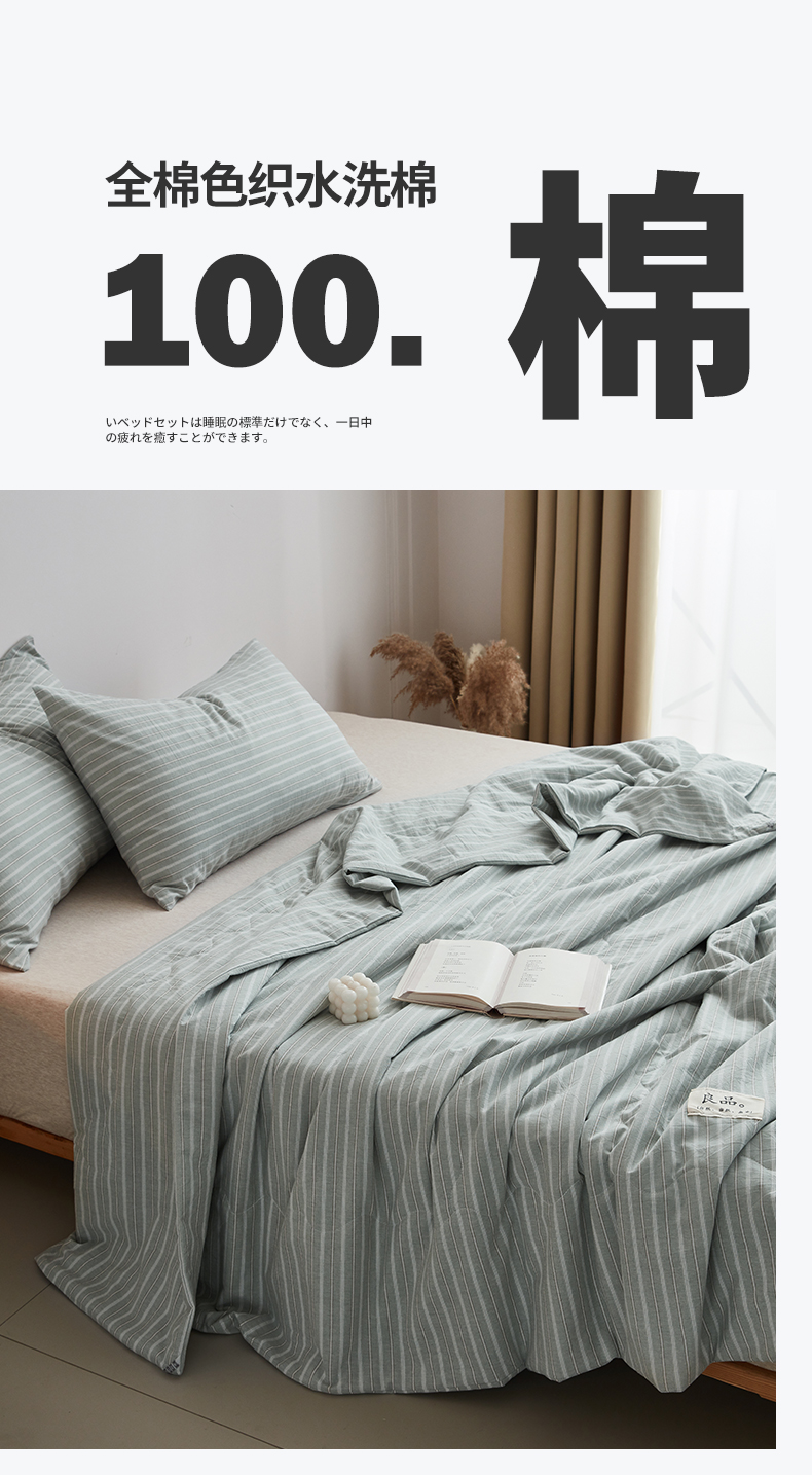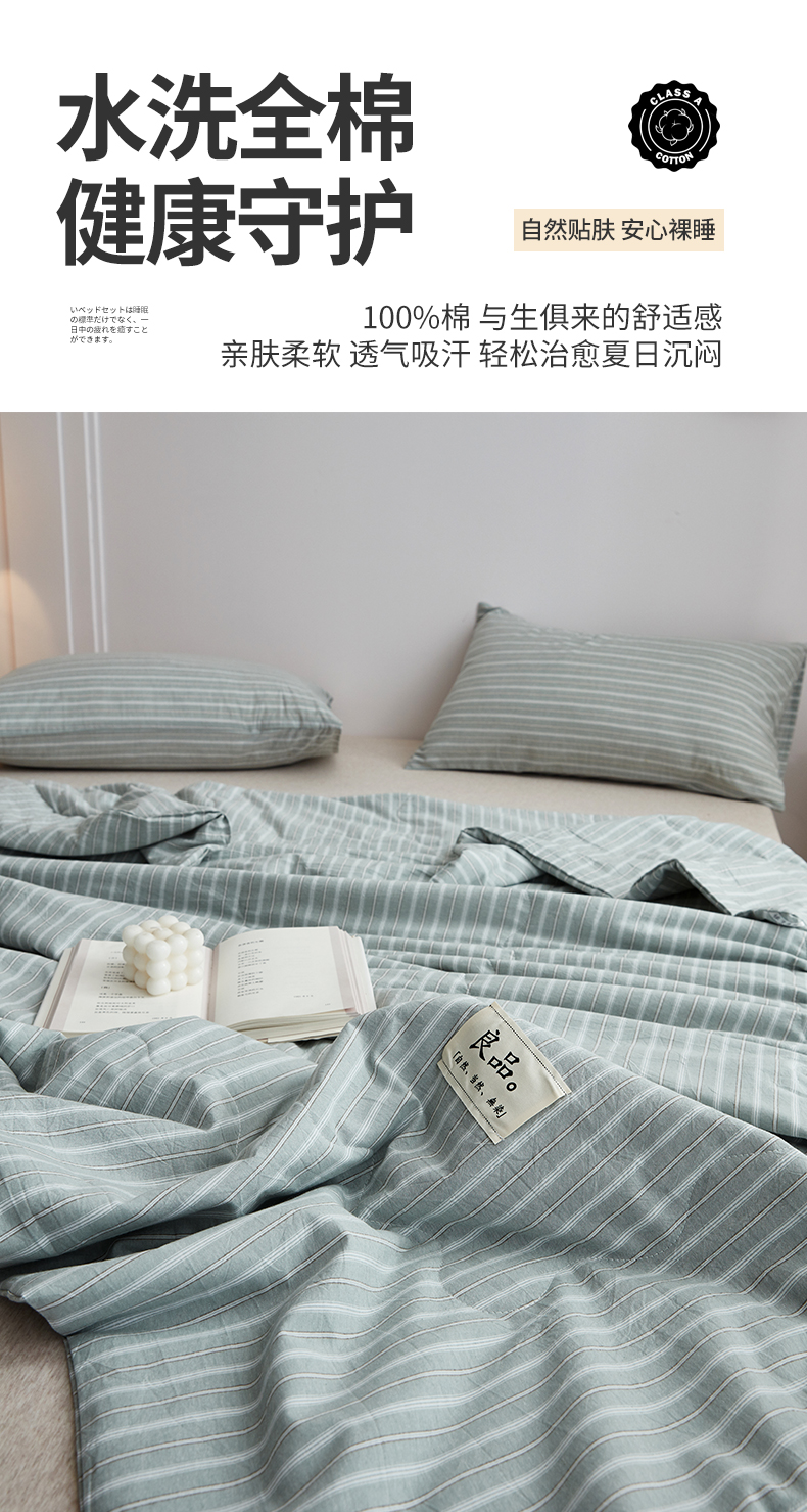 尊妙被业 2026新款全棉色织水洗棉春秋被夏被-叠拍 乐事-绿