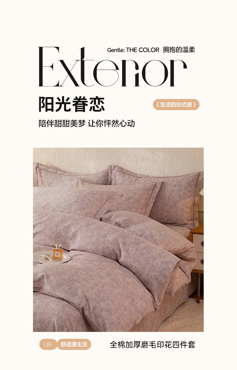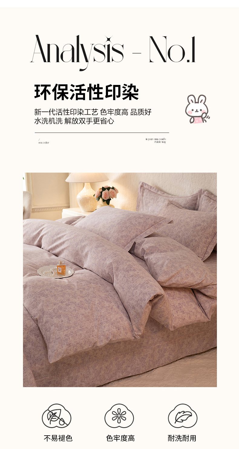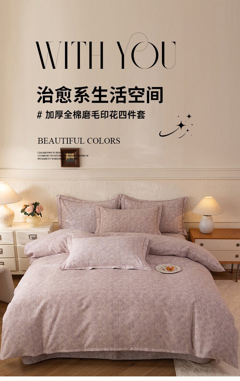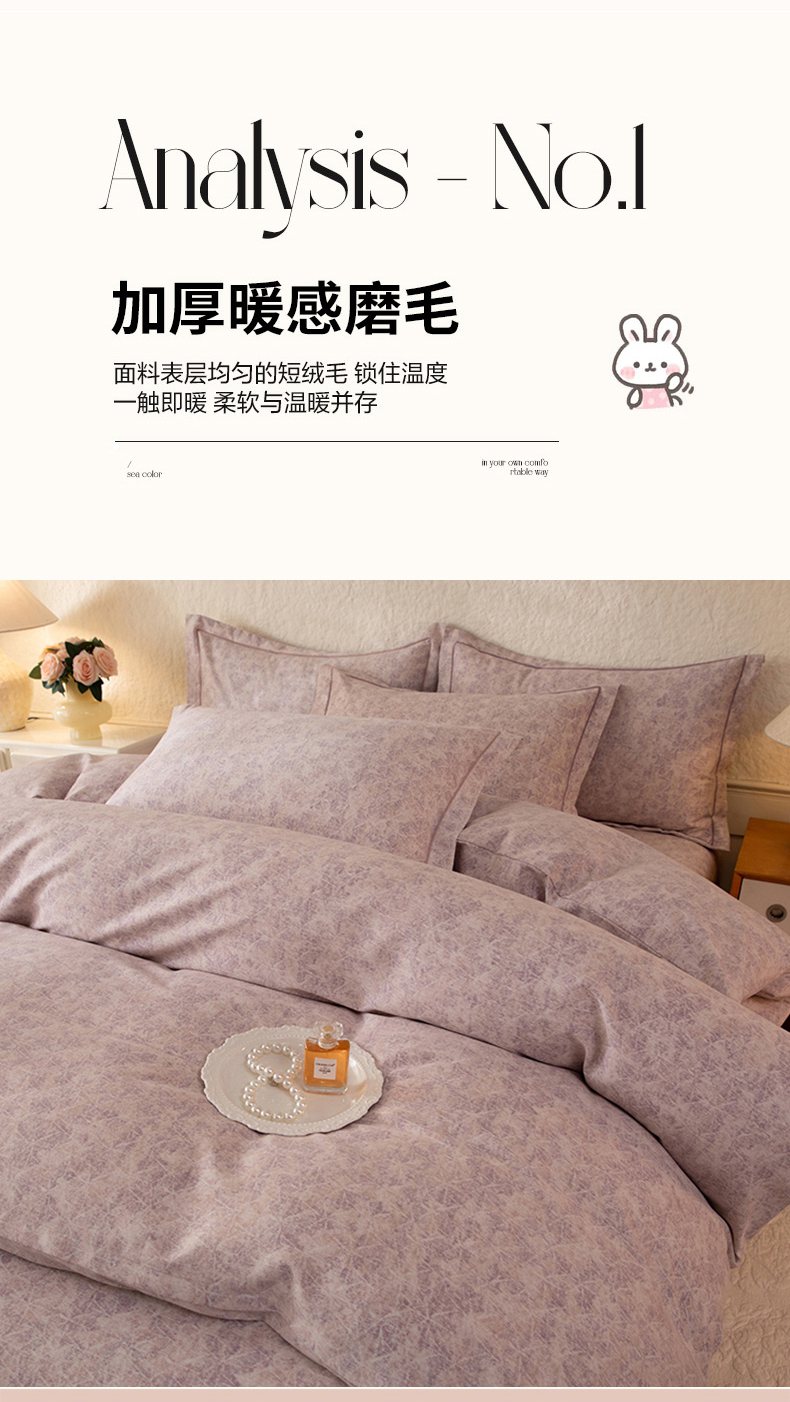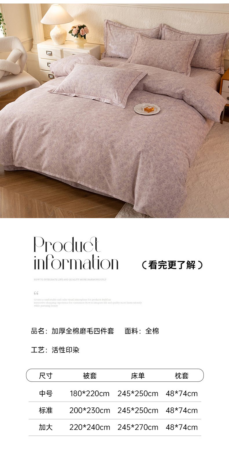 商品名称:磨毛世家家纺 2026新款铂金磨毛纯棉加厚全棉磨毛四件套 风信紫