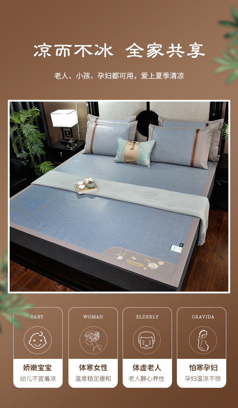 2023新款夏日冰点-冰藤双面席凉席藤席竹席冰丝席乳胶席,咖色,蓝色,绿色,香槟