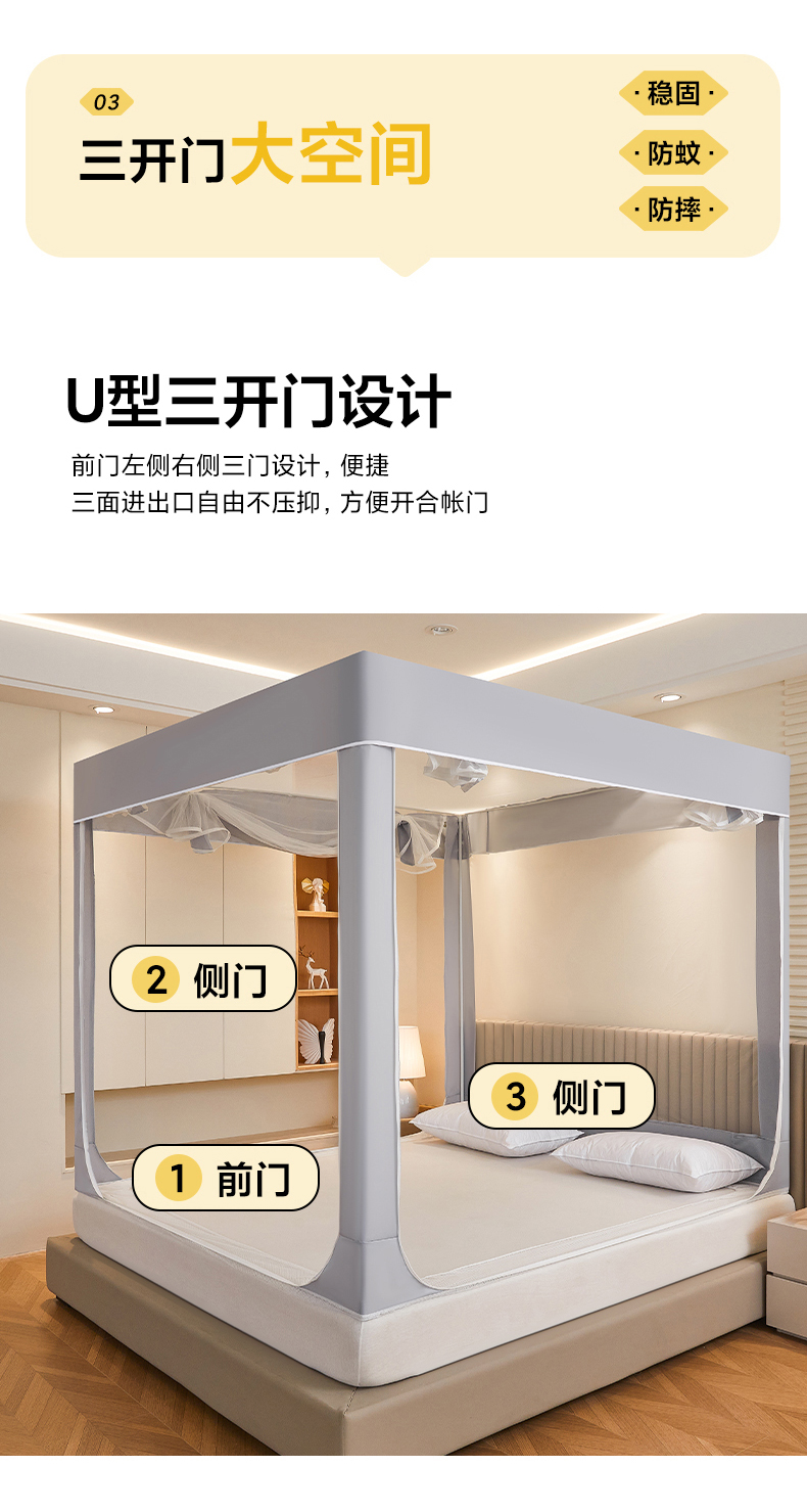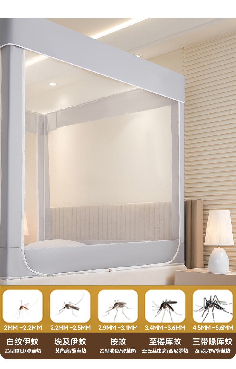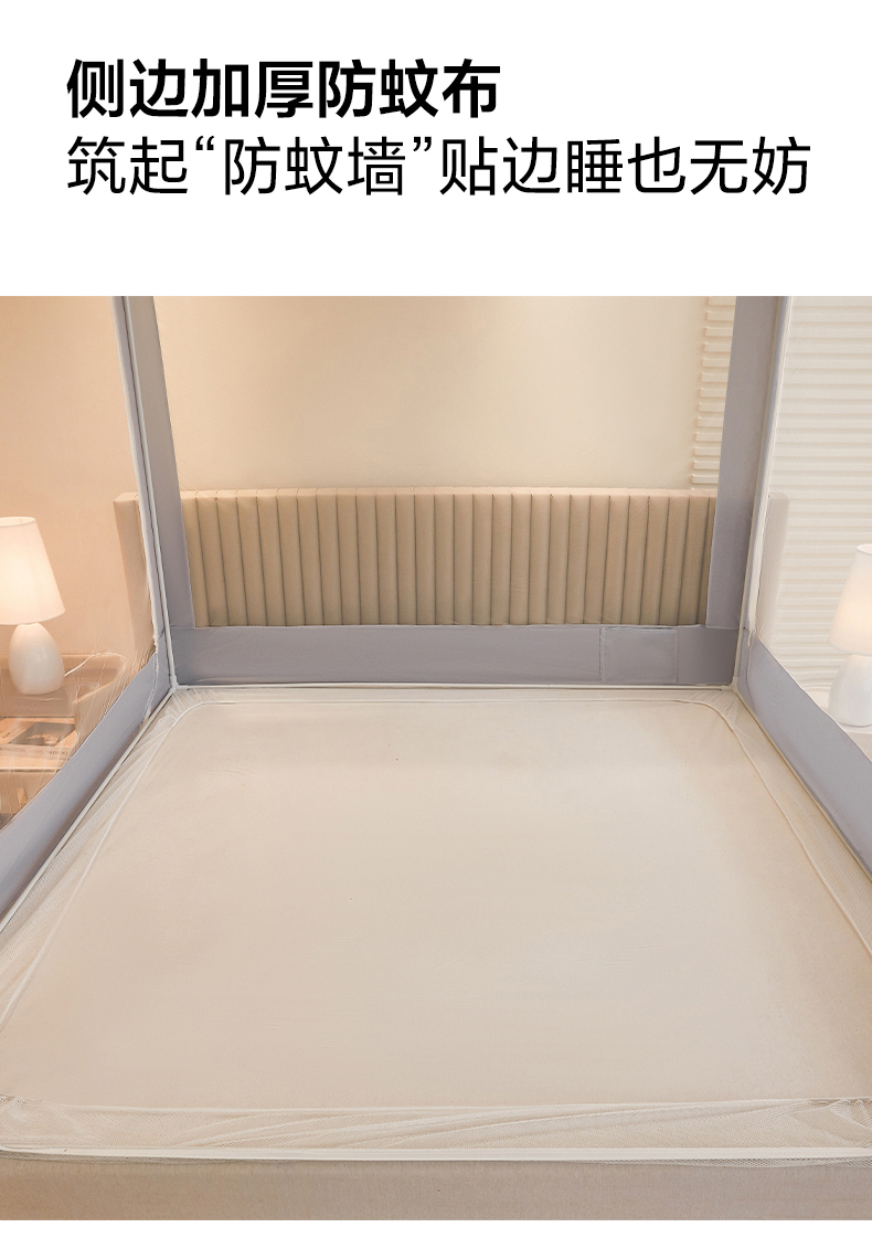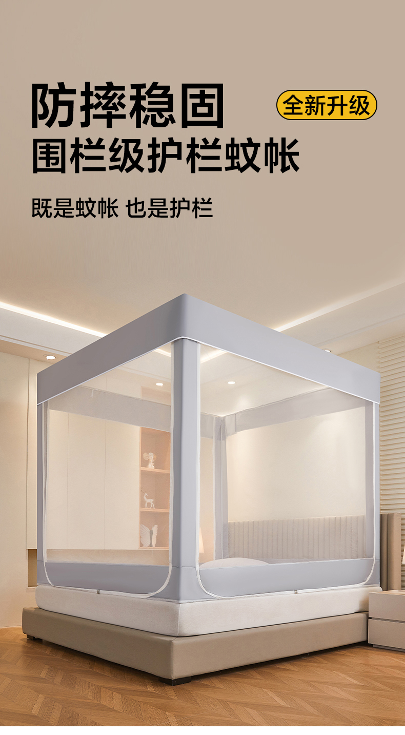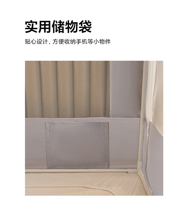 商品名称:都市缘蚊帐 2026新款三开门坐床防摔蚊帐拉链方帐1.5m1.8m506坐床蚊帐 506太空银