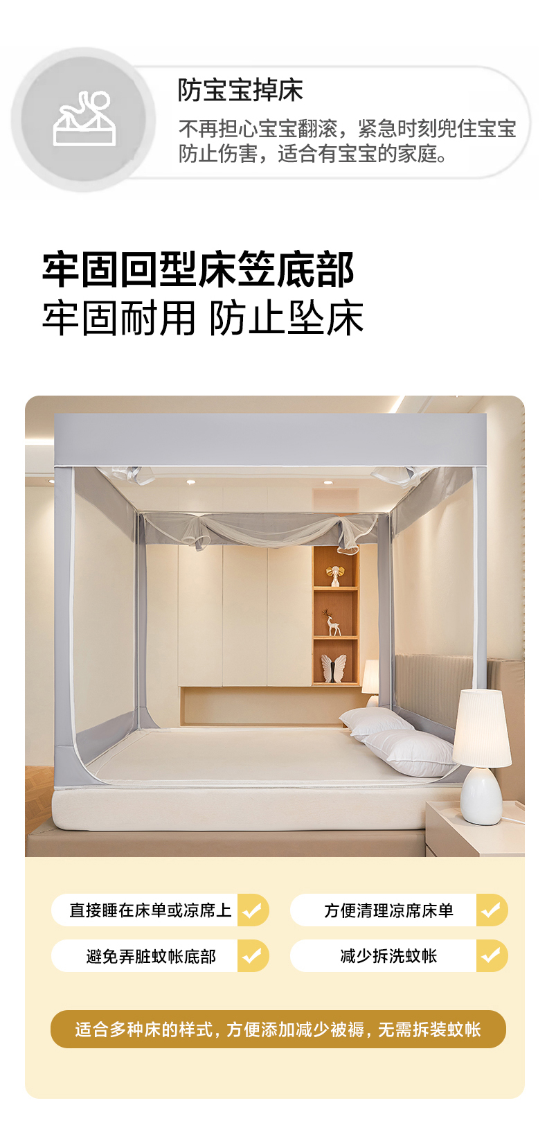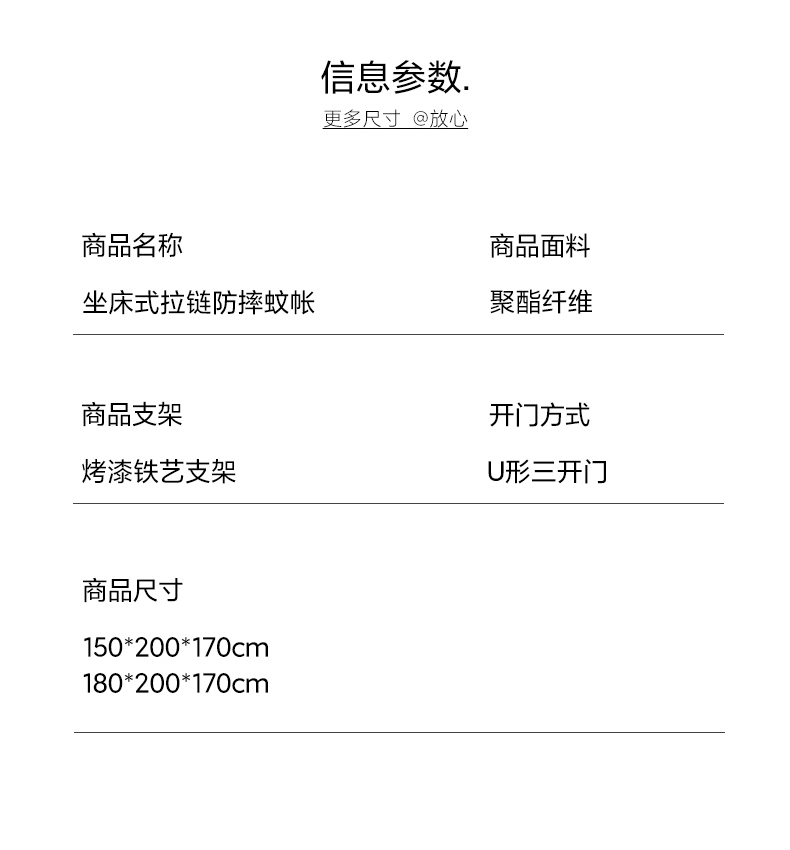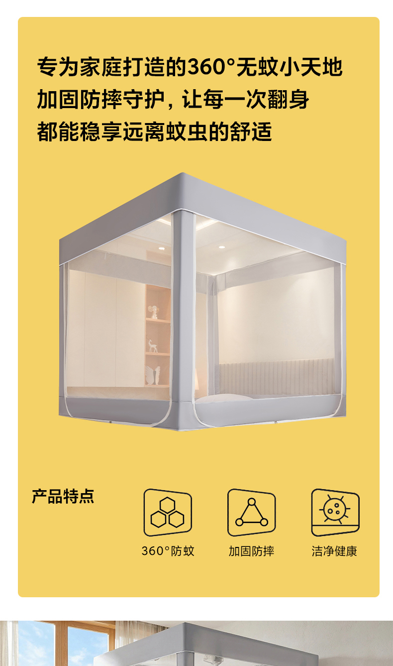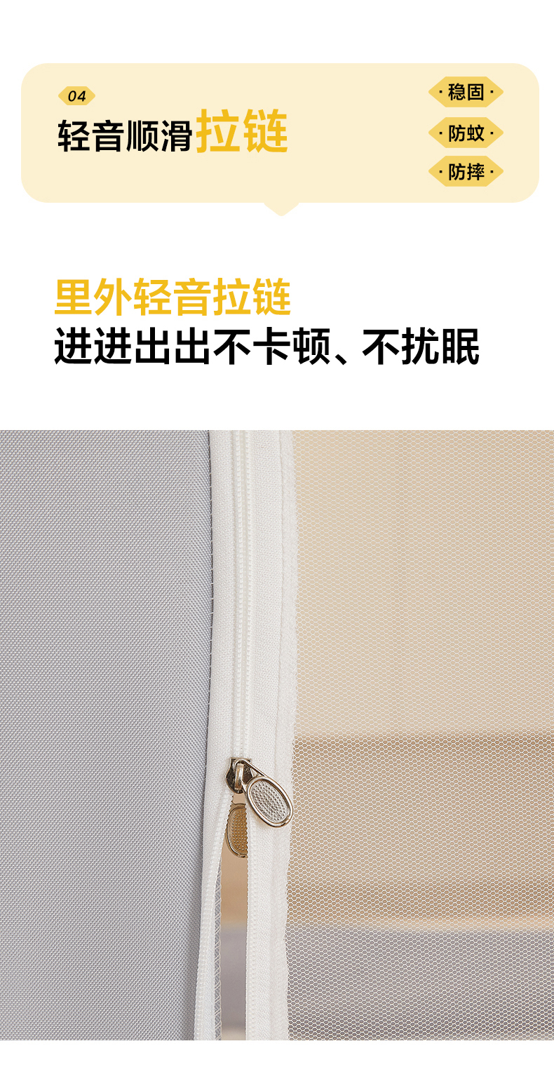 商品名称:都市缘蚊帐 2026新款三开门坐床防摔蚊帐拉链方帐1.5m1.8m506坐床蚊帐 506太空银