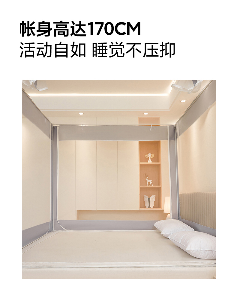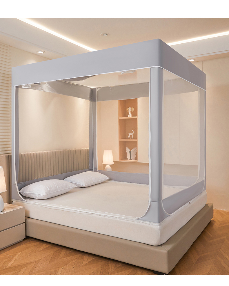 都市缘蚊帐 2026新款三开门坐床防摔蚊帐拉链方帐1.5m1.8m506坐床蚊帐 506太空银