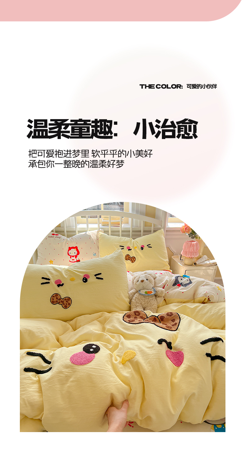 当前位置: 91家纺网 > 商品网购 > 床品套件 > 四件套 > 水洗棉四件套 > 颜选 2026春夏新款卡通款水洗棉毛巾绣四件套-凯蒂猫 凯蒂猫-少女粉