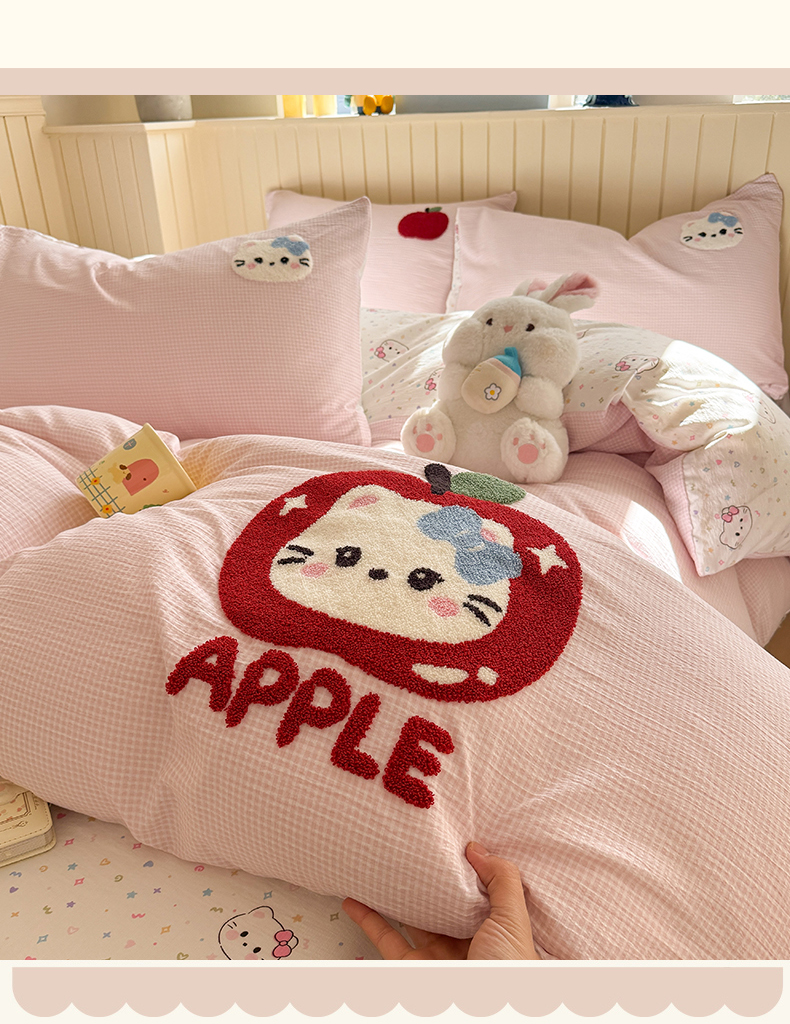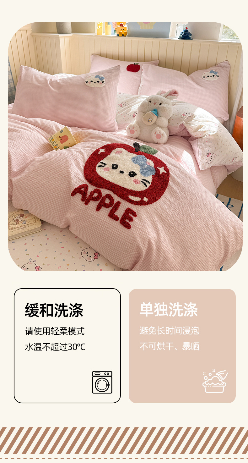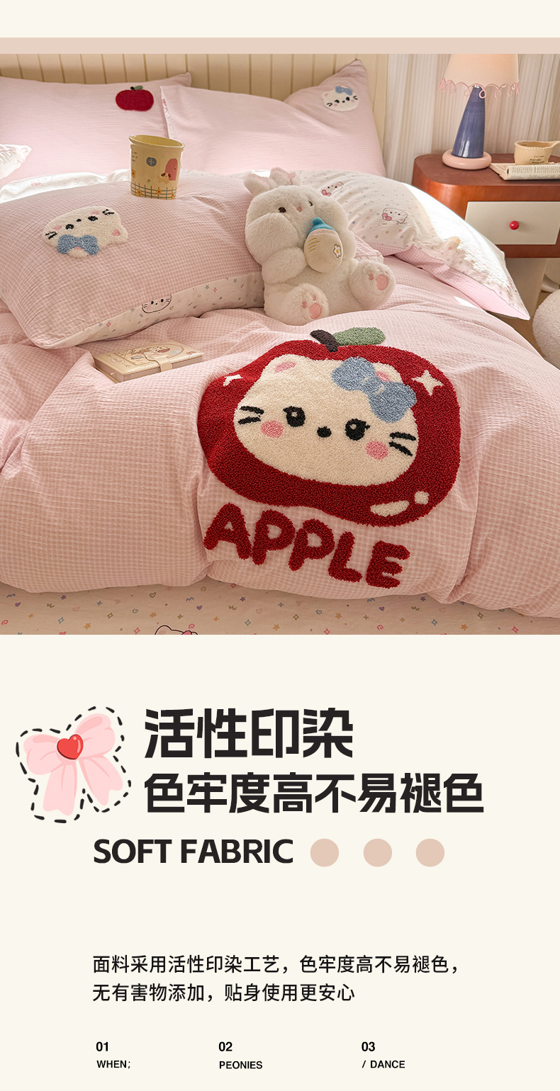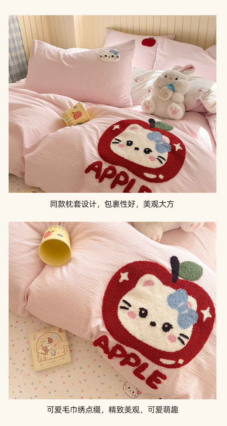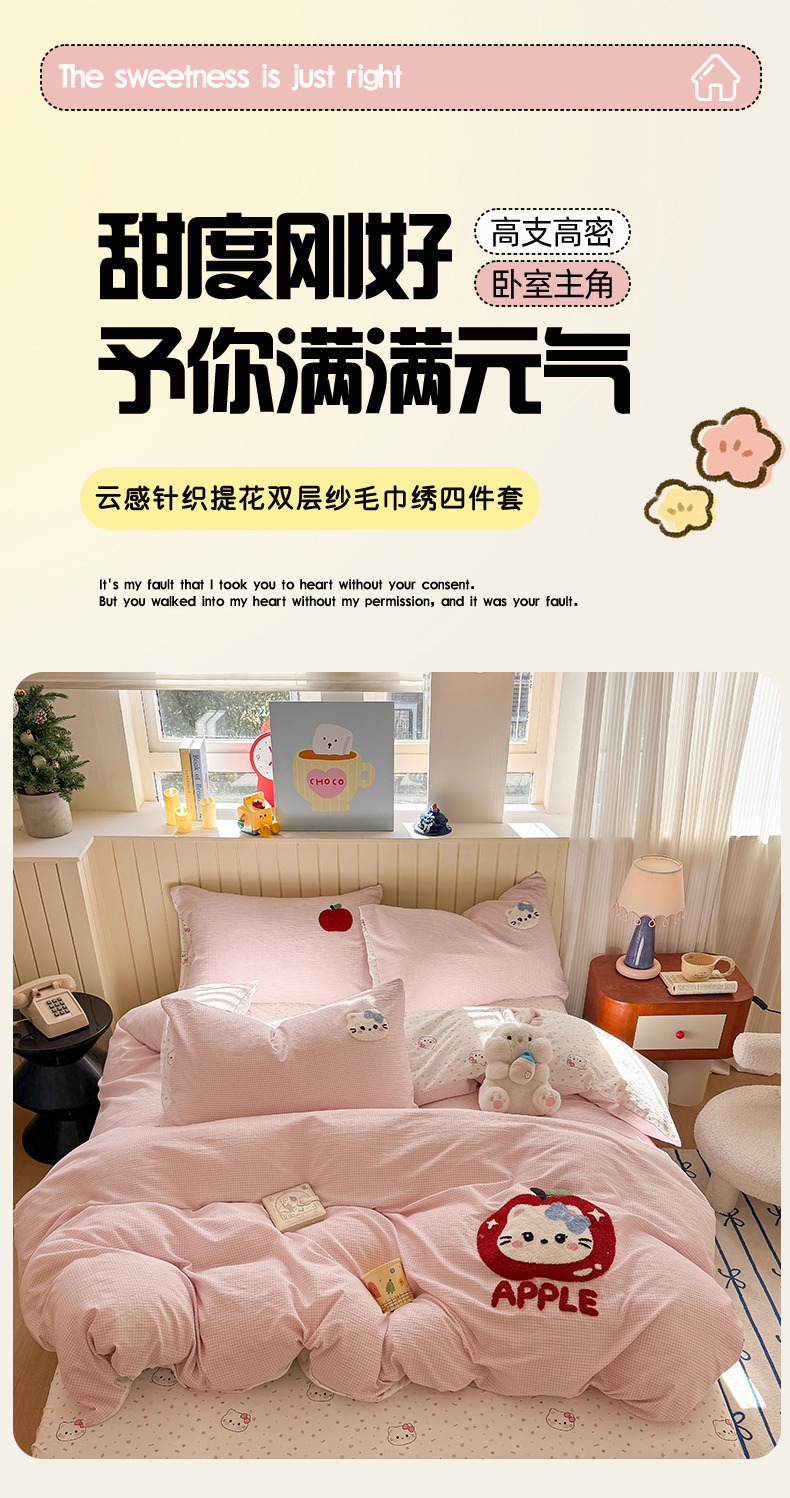 当前位置: 91家纺网 > 商品网购 > 床品套件 > 四件套 > 针织棉四件套 > 艾特你 2026新款针织提花双层纱可爱毛巾绣四件套 糖果猫咪
