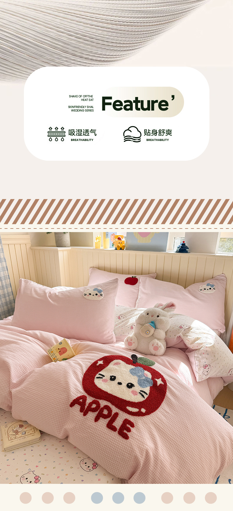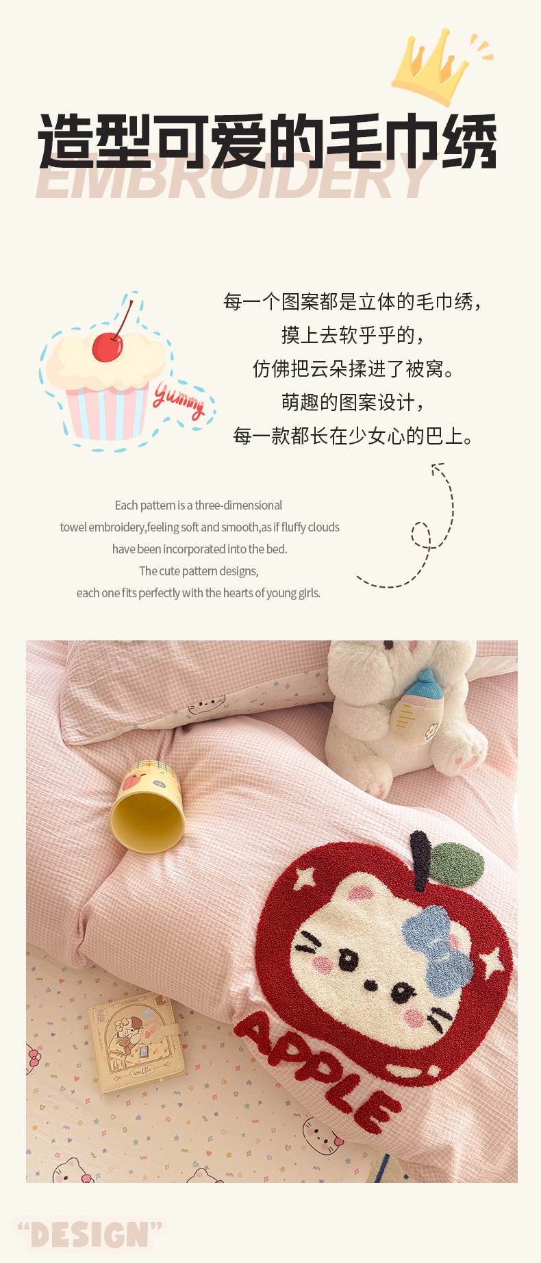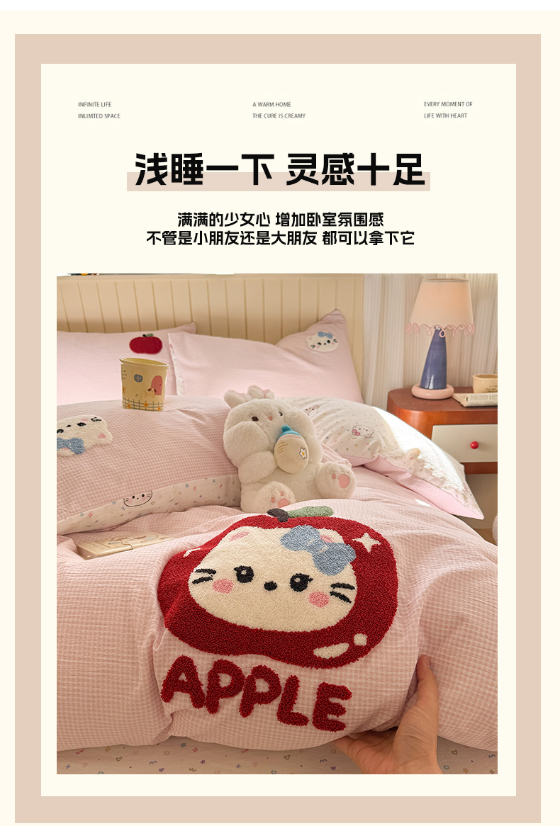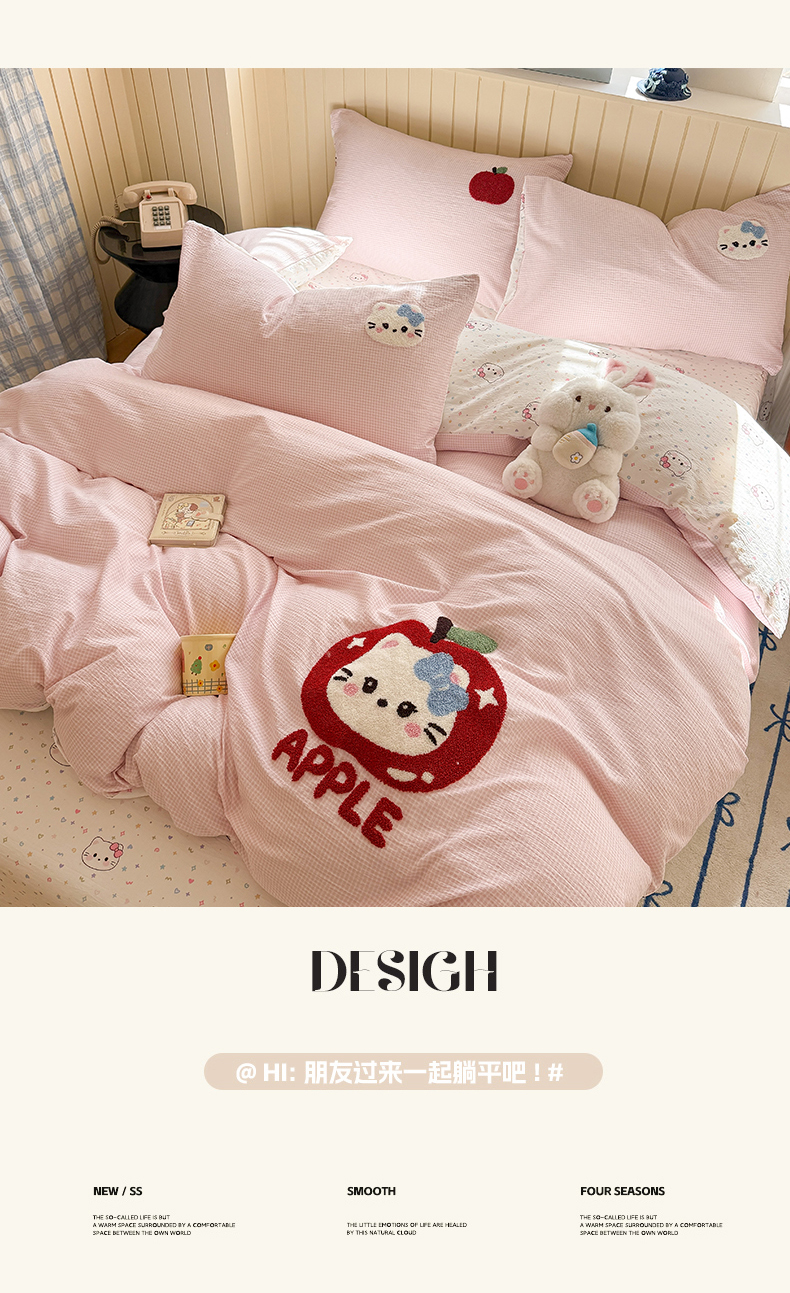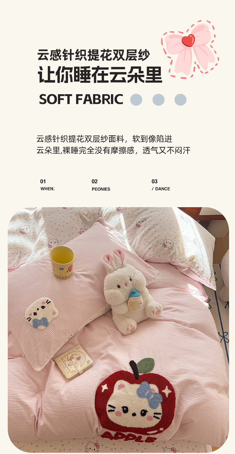 当前位置: 91家纺网 > 商品网购 > 床品套件 > 四件套 > 针织棉四件套 > 艾特你 2026新款针织提花双层纱可爱毛巾绣四件套 糖果猫咪