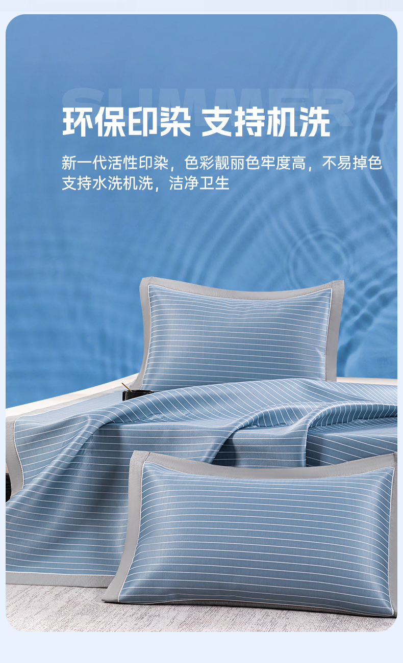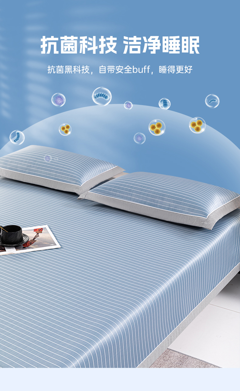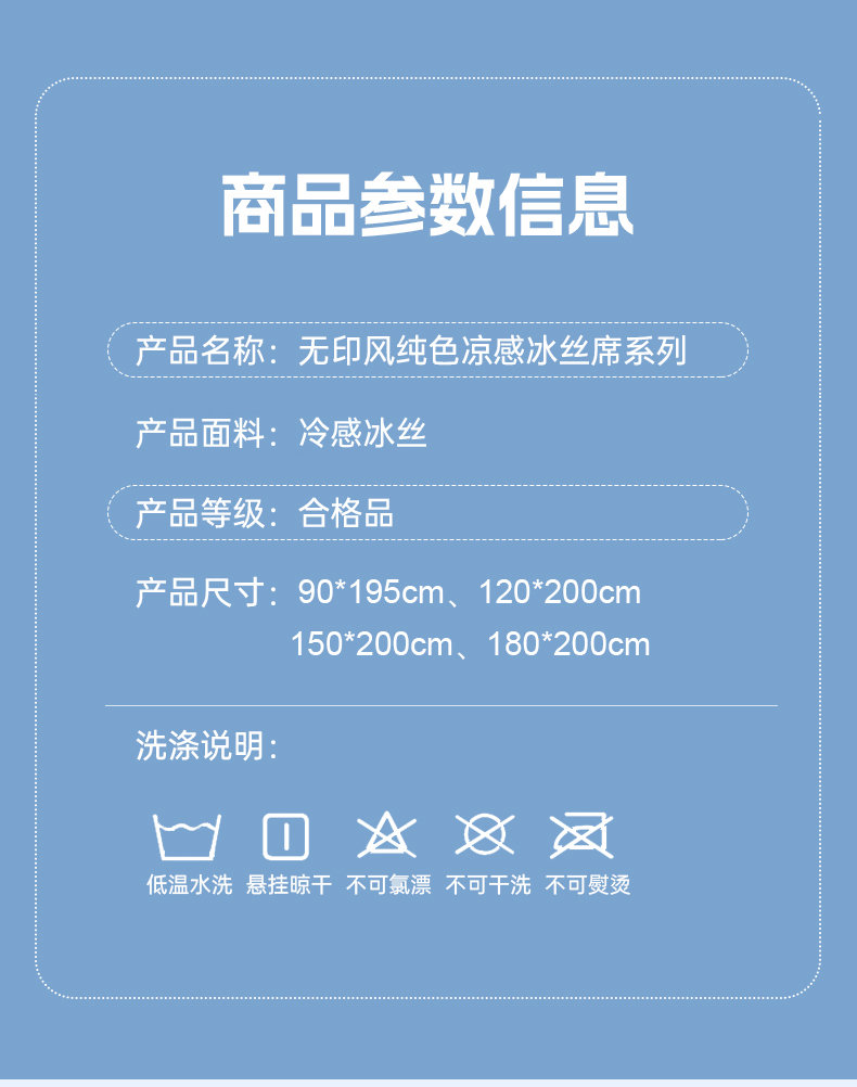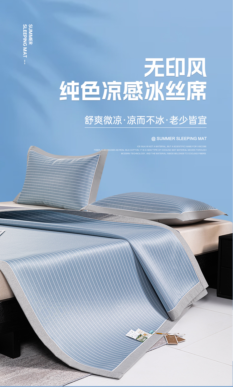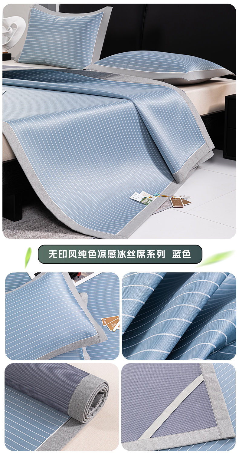 商品名称:小牛席业 2026新款无印风纯色凉感冰丝系列-床席款凉席藤席冰藤席冰丝席竹席乳胶席凉感豆豆席草席空调席 蓝色