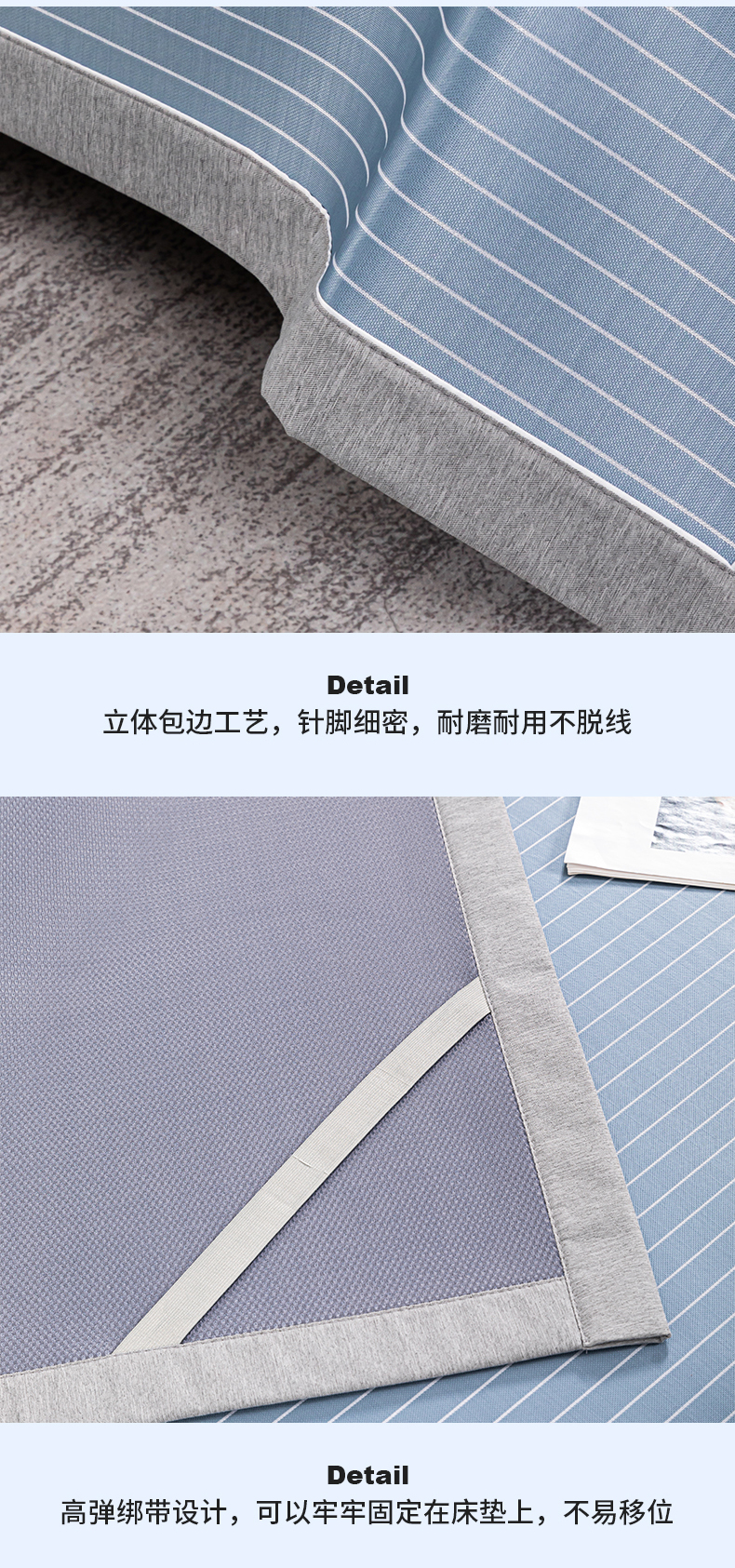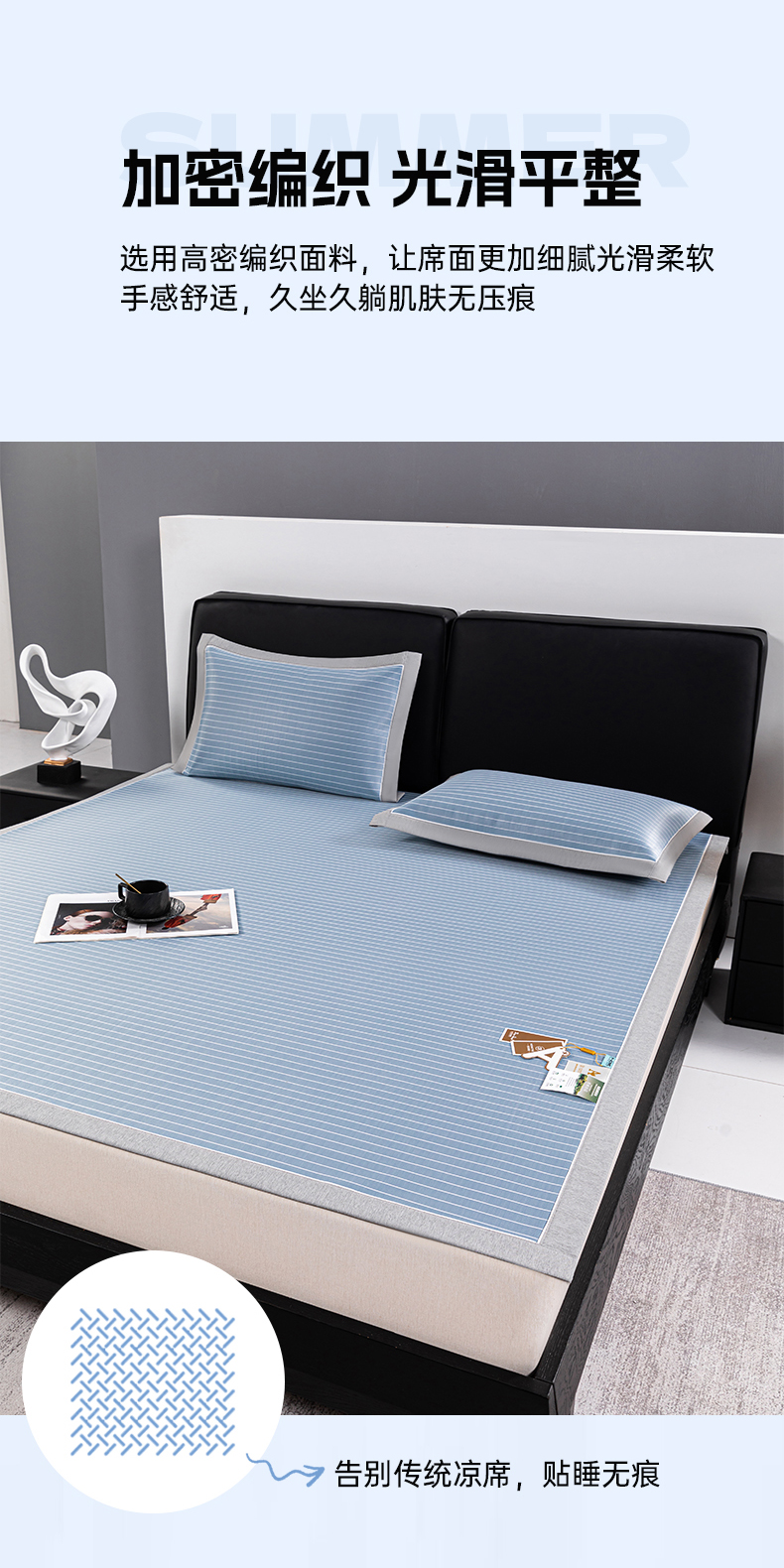 (总)2023新款超精密冰丝席-小斜纹系列-床笠款藤席凉席竹席,粉色,蓝色,绿色,银灰