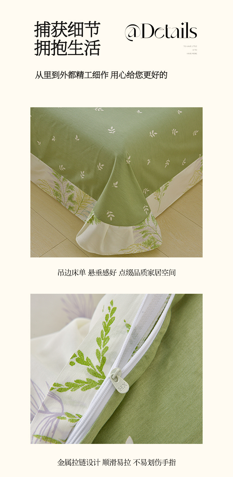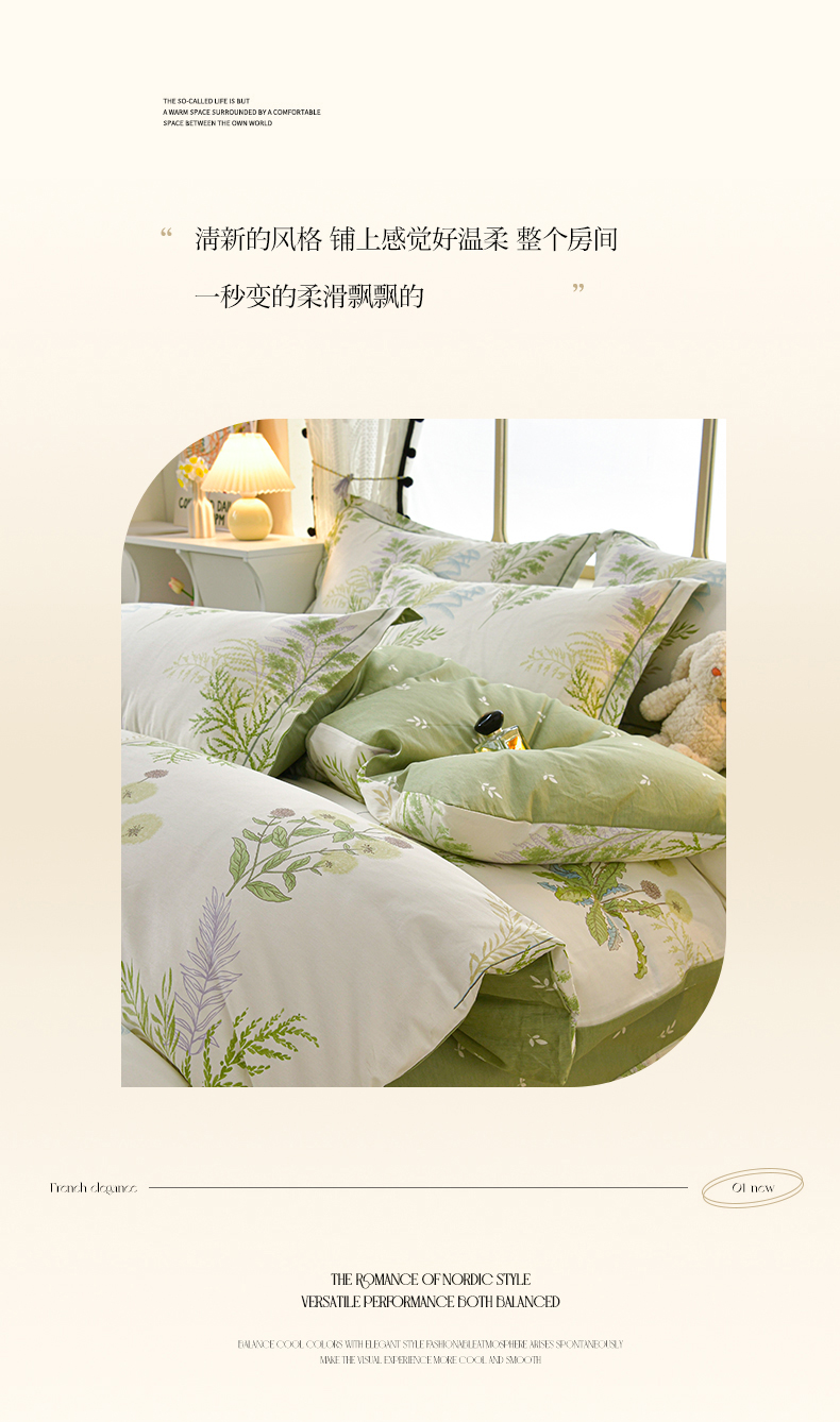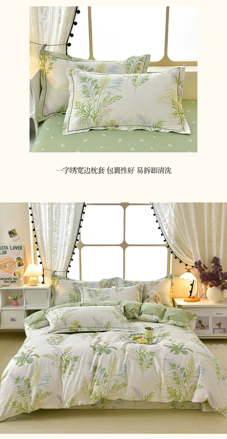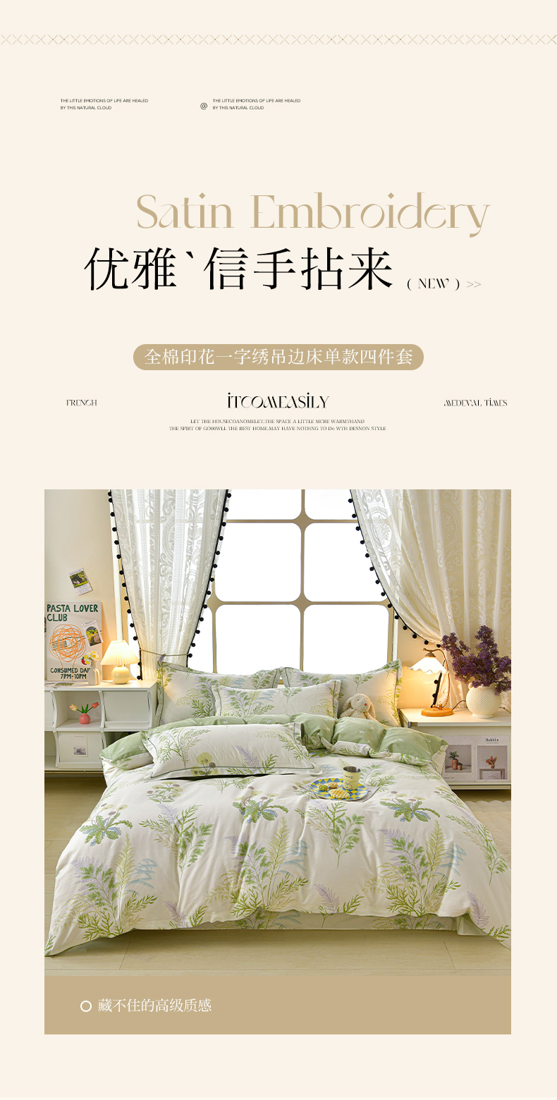 商品名称:绘萱家居 2026直播爆款一字绣吊边款纯棉100%全棉四件套印花百分百(喷气高品质) 青禾仙草