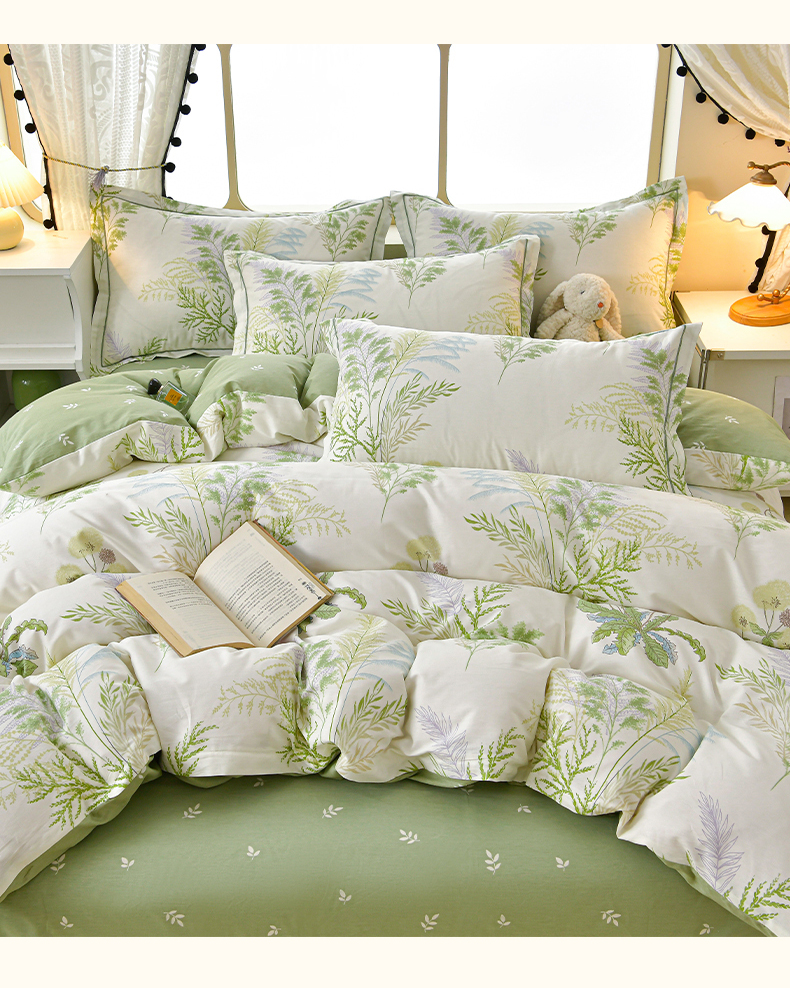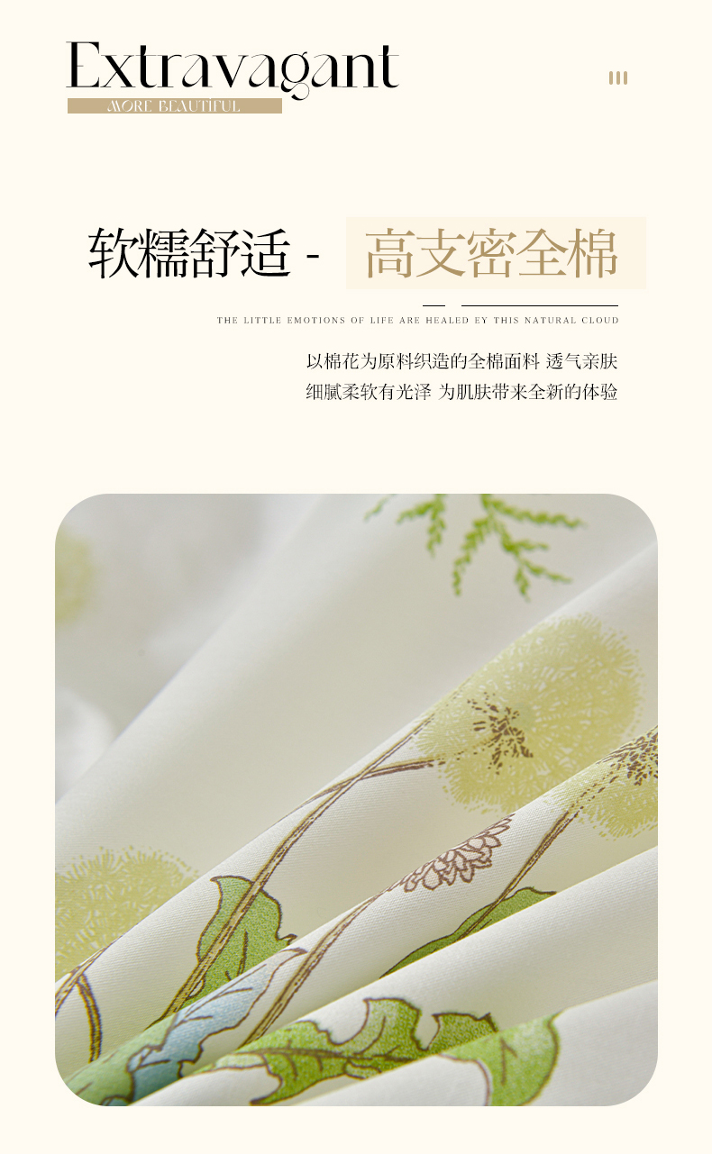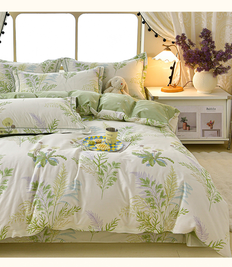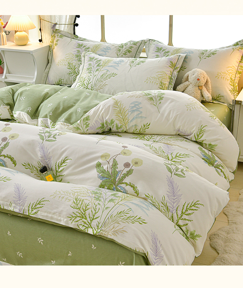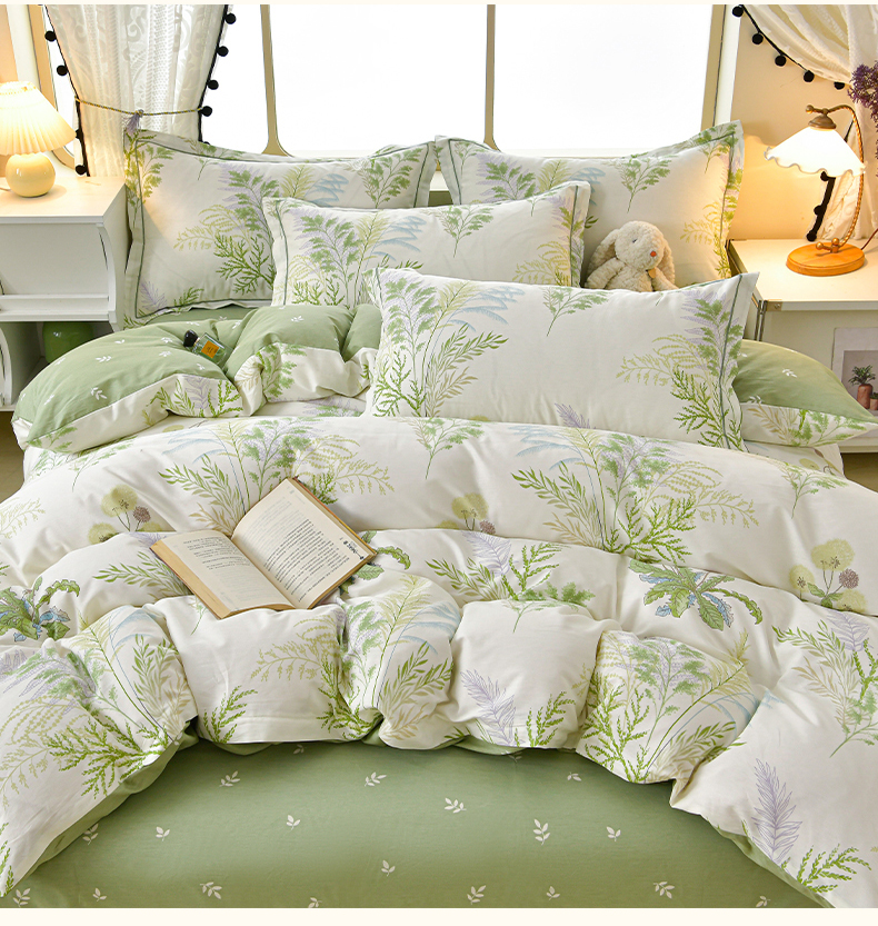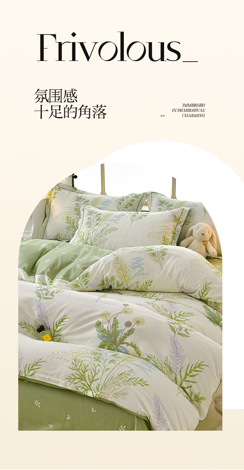 商品名称:绘萱家居 2026直播爆款一字绣吊边款纯棉100%全棉四件套印花百分百(喷气高品质) 青禾仙草