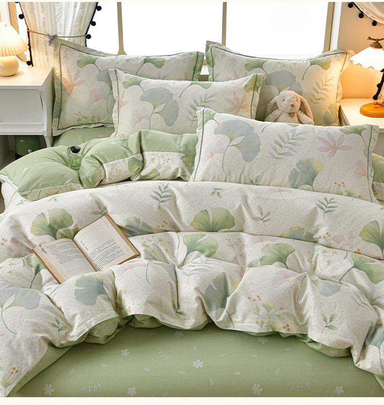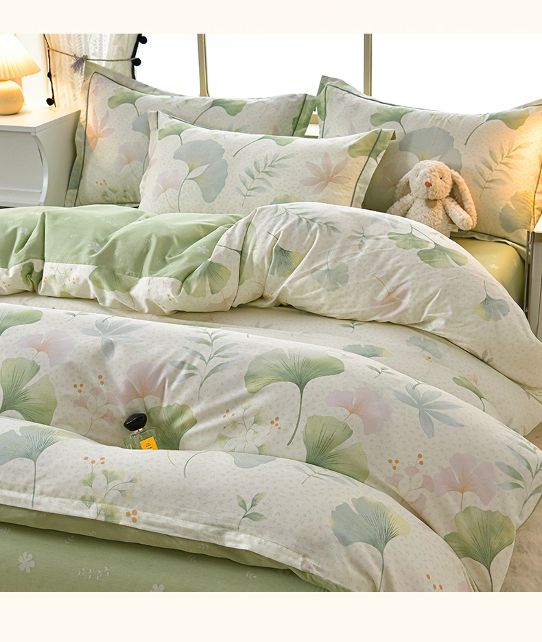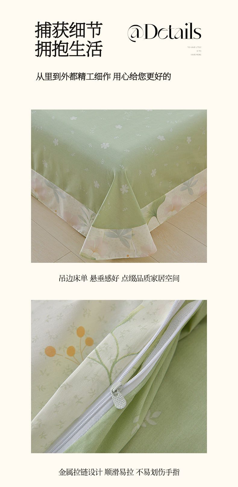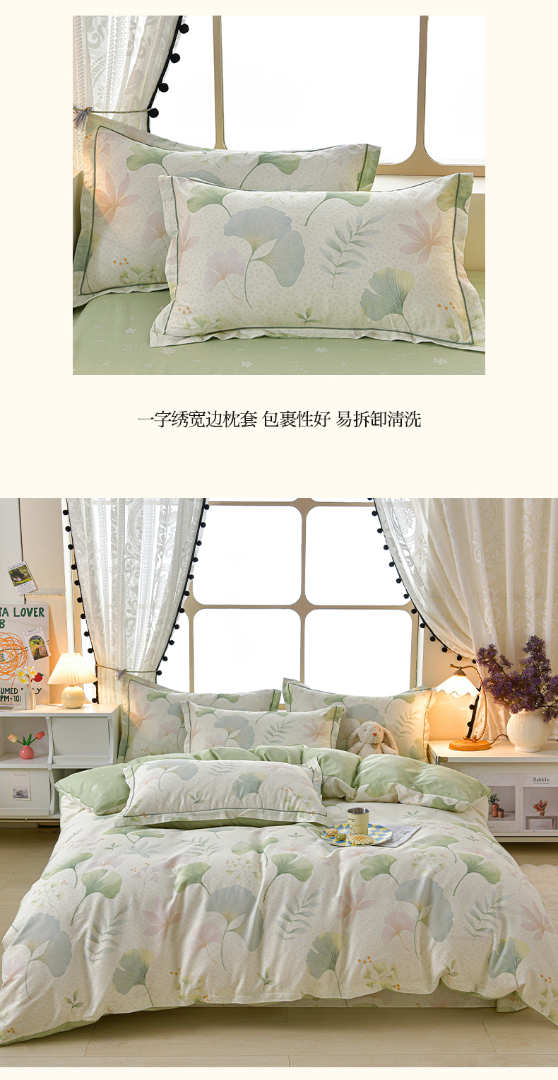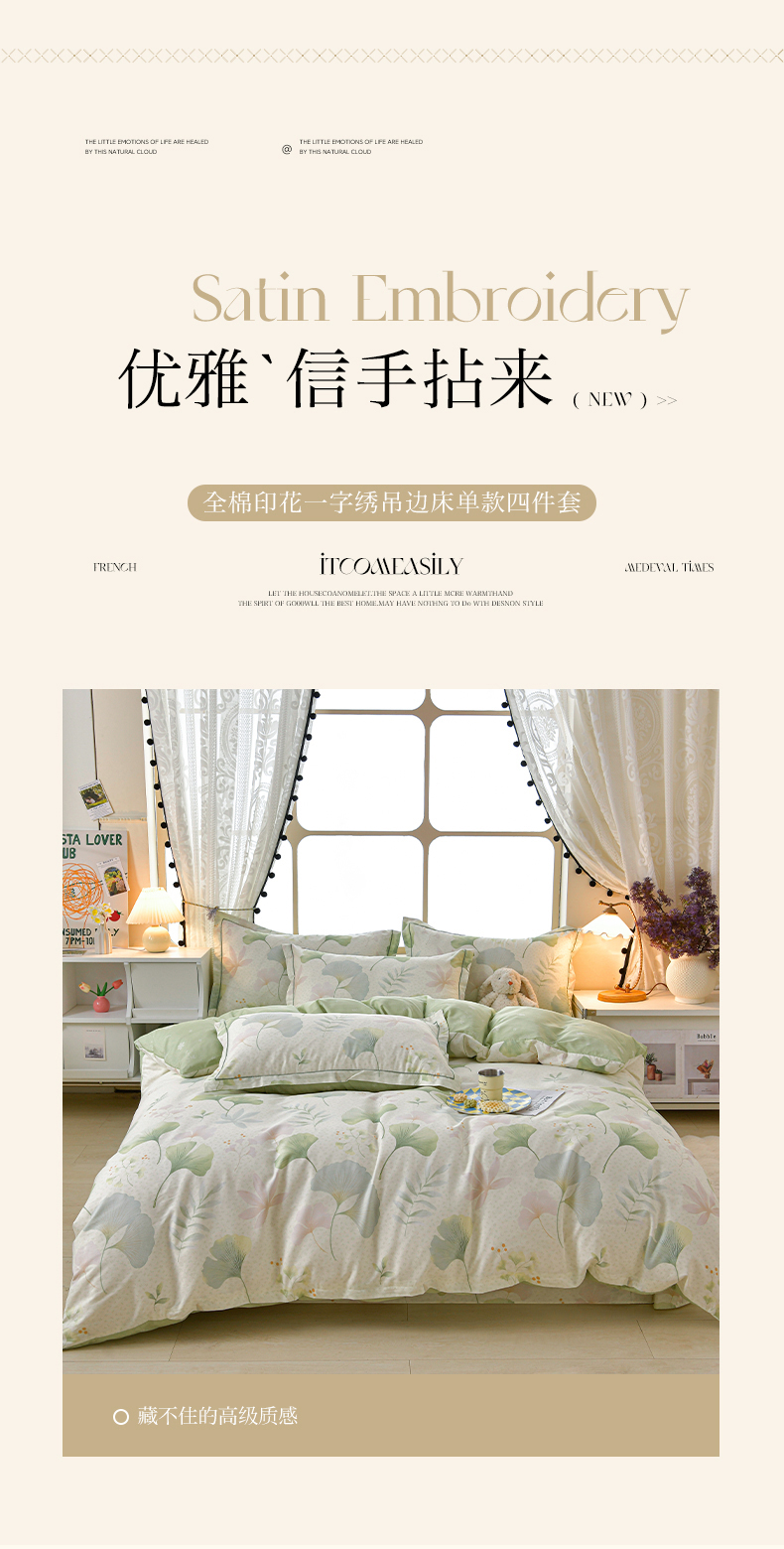 商品名称:绘萱家居 2026直播爆款一字绣吊边款纯棉100%全棉四件套印花百分百(喷气高品质) 银杏疏影