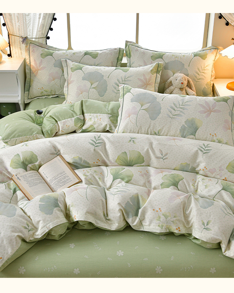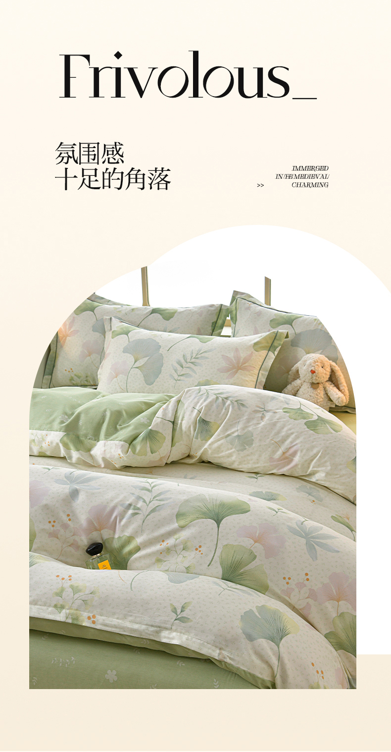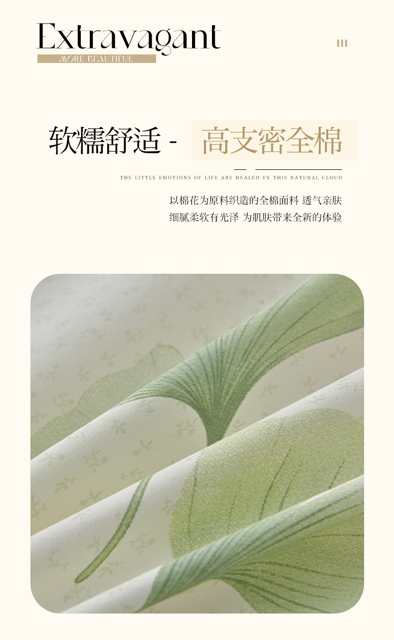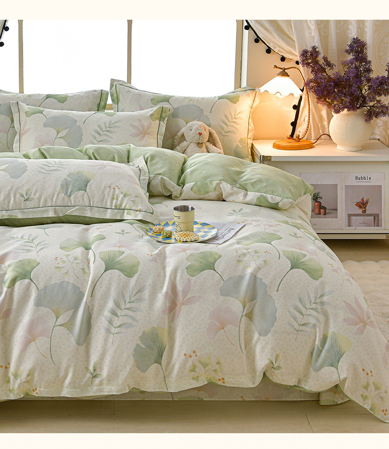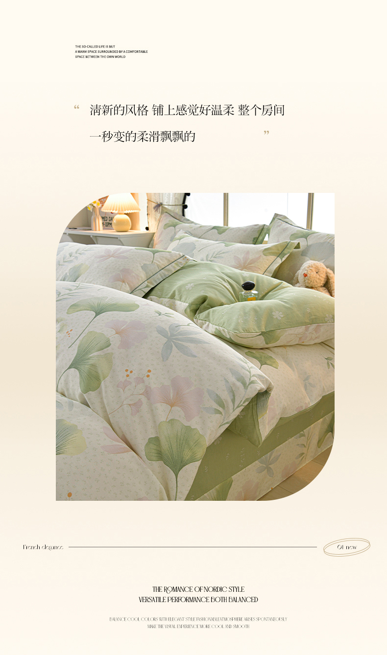 商品名称:绘萱家居 2026直播爆款一字绣吊边款纯棉100%全棉四件套印花百分百(喷气高品质) 银杏疏影