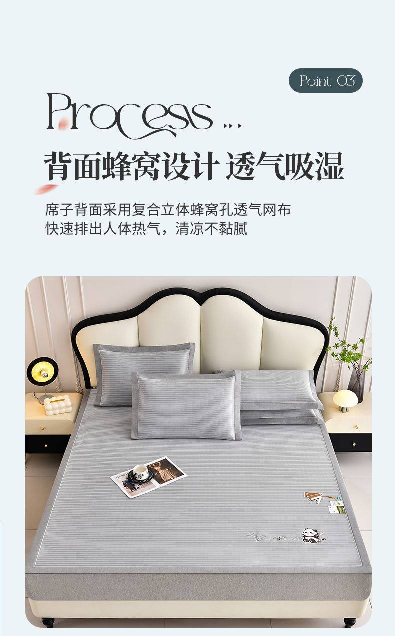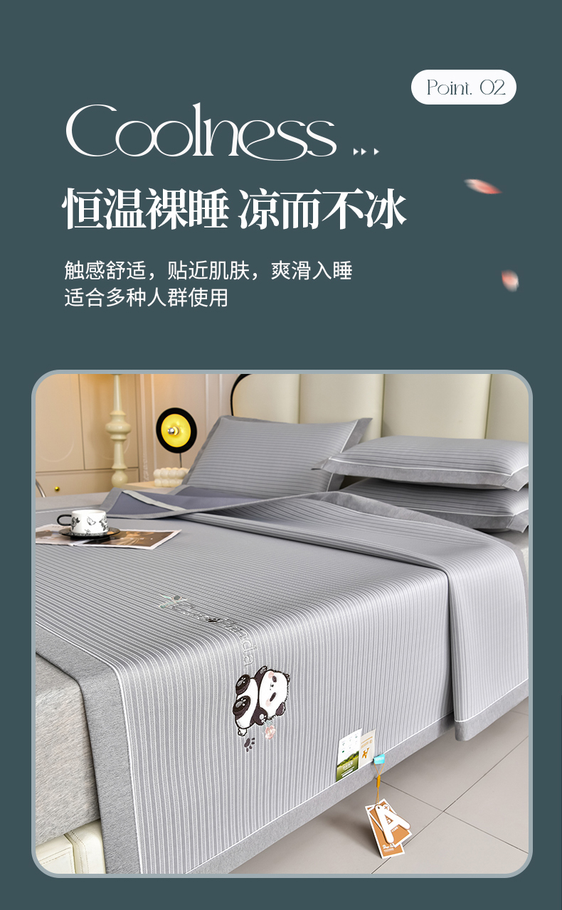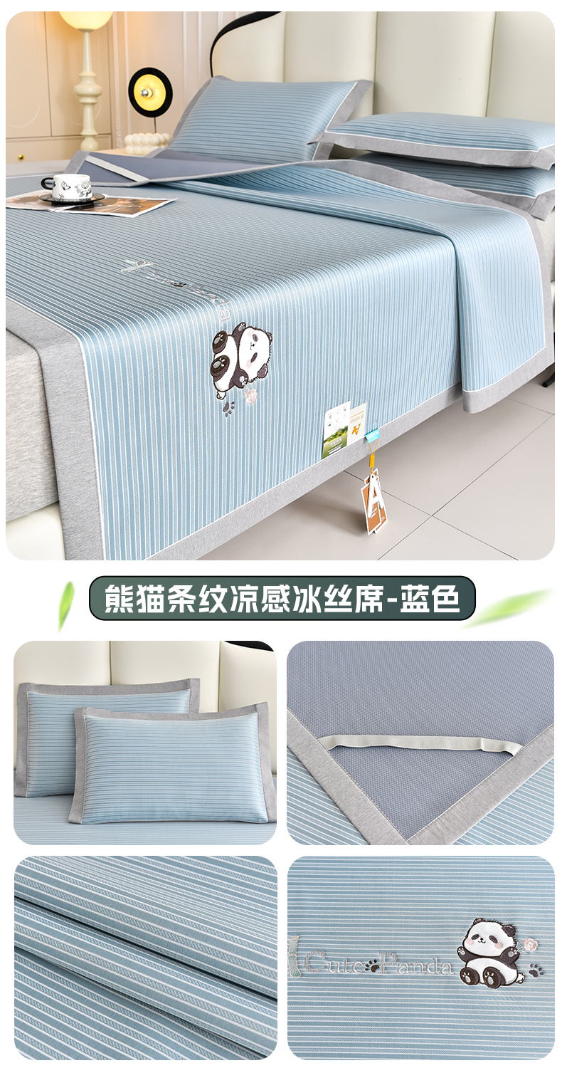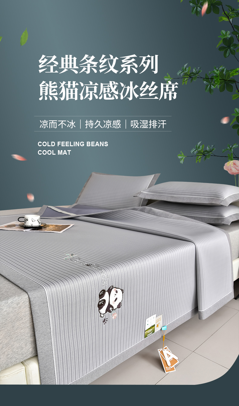 商品名称:(总)小牛席业 2026新款经典条纹熊猫凉感冰丝席凉席席子 系列