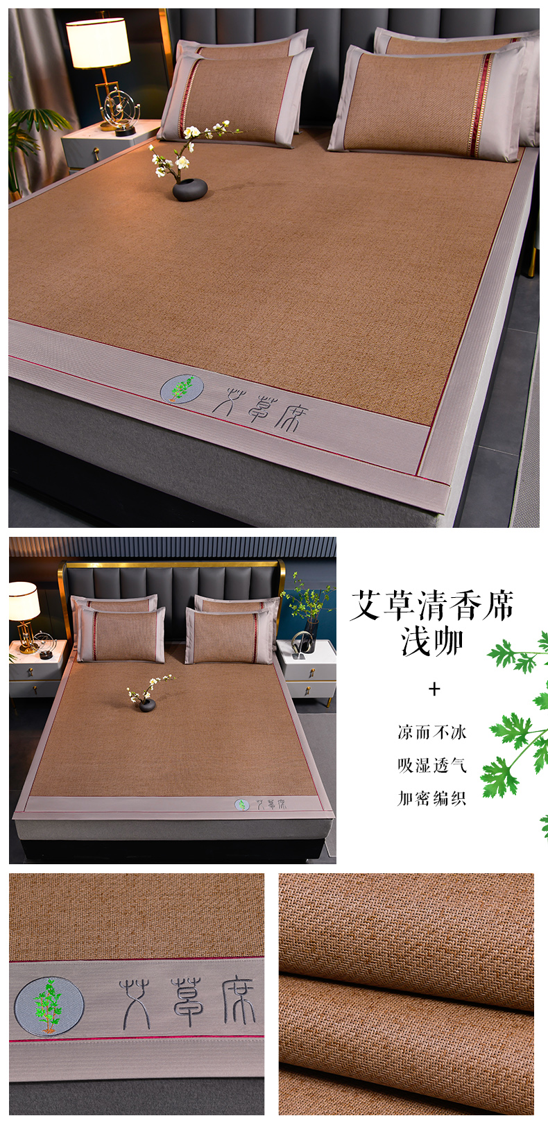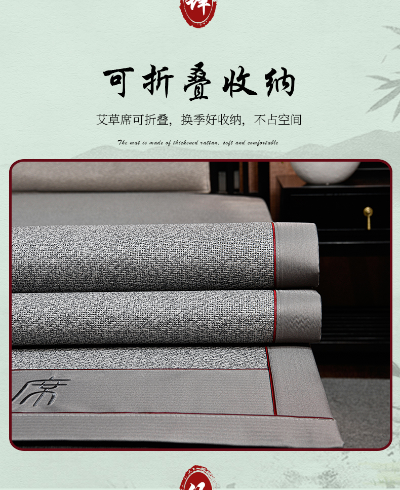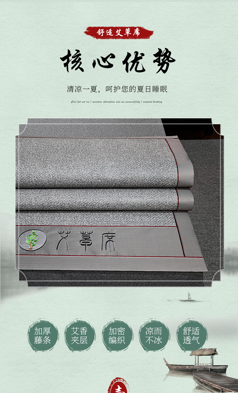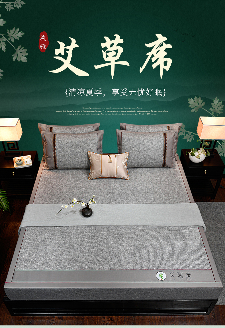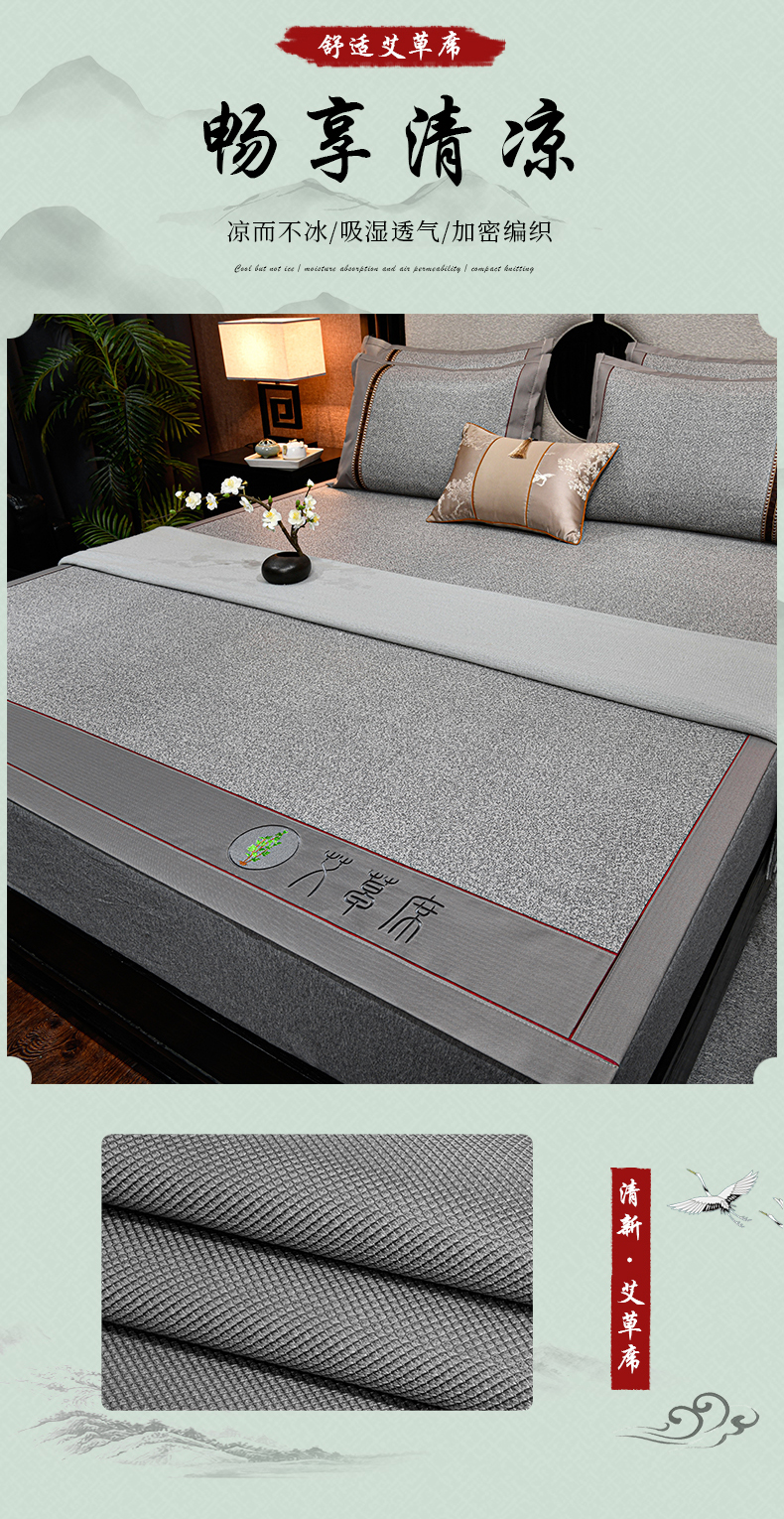 商品名称:小牛席业 2026新款加厚款-经典艾草养生席系列 艾草席-灰色