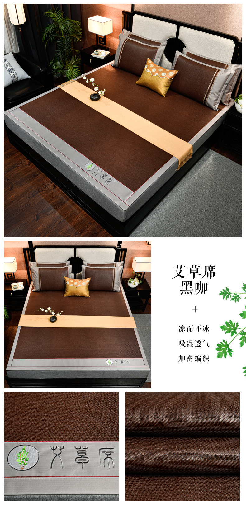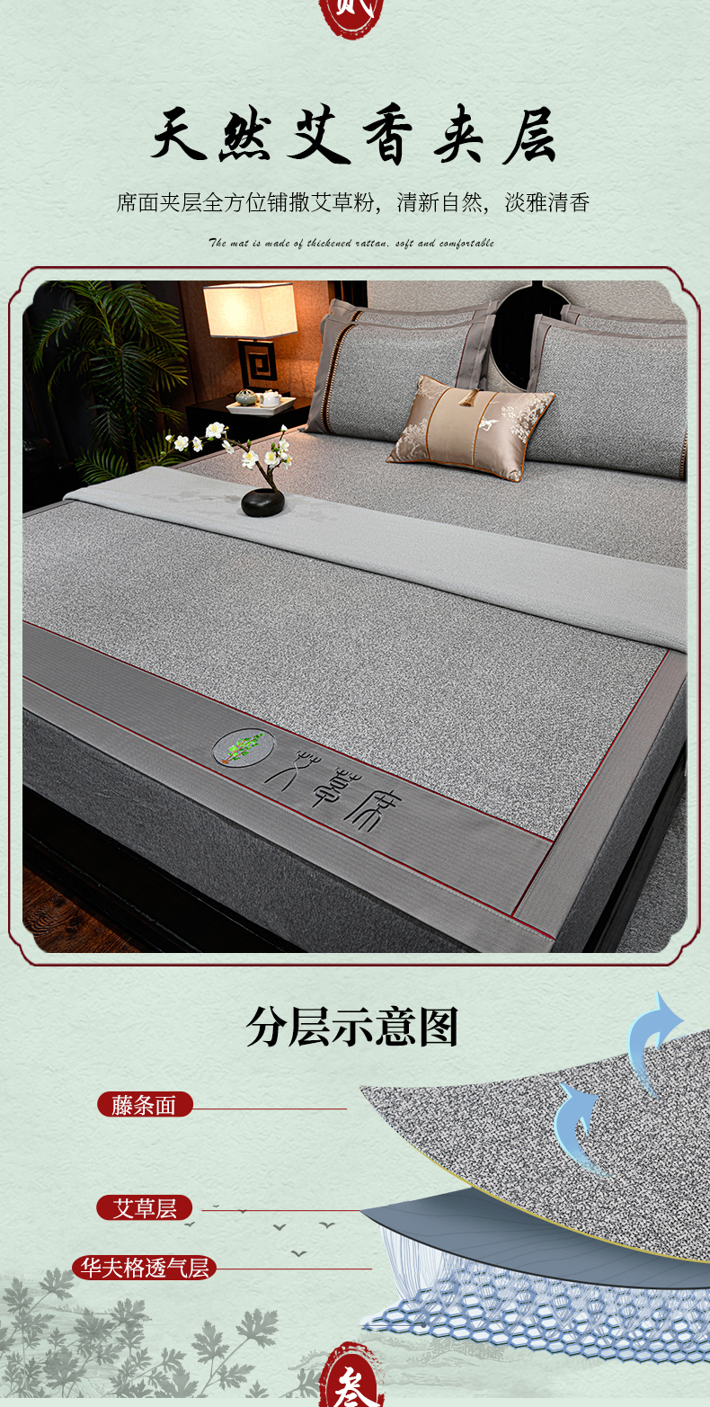 2023新款经典全藤席面艾草养生席冰藤席凉席冰丝席竹席乳胶席空调席,艾草席-冰蓝,艾草席-黑咖,艾草席-红棕,艾草席-黄藤,艾草席-灰色,艾草席-墨绿,艾草席-浅咖,艾草席-亚麻