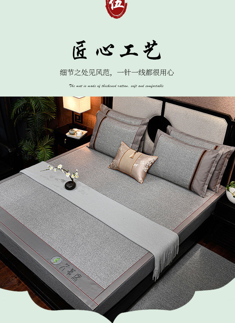 2023新款经典全藤席面艾草养生席-床笠款冰藤席冰丝席竹席空调席凉席,冰蓝,黑咖,红棕,黄藤,灰色,墨绿,浅咖,亚麻