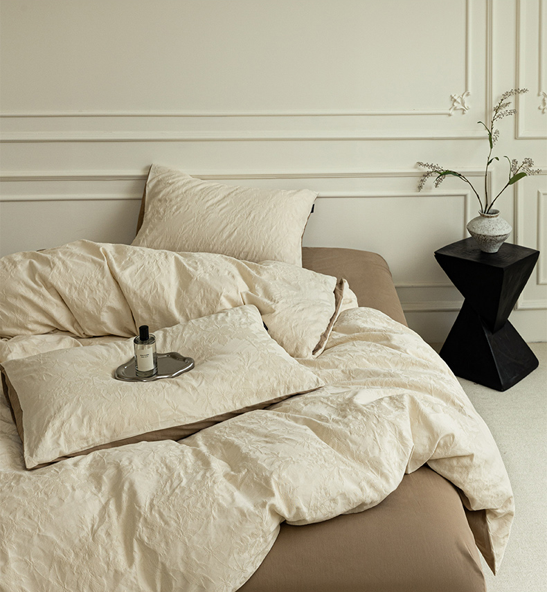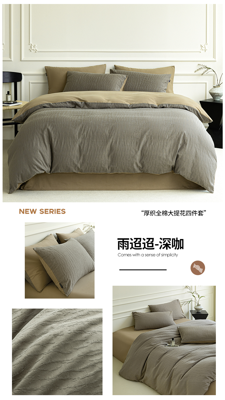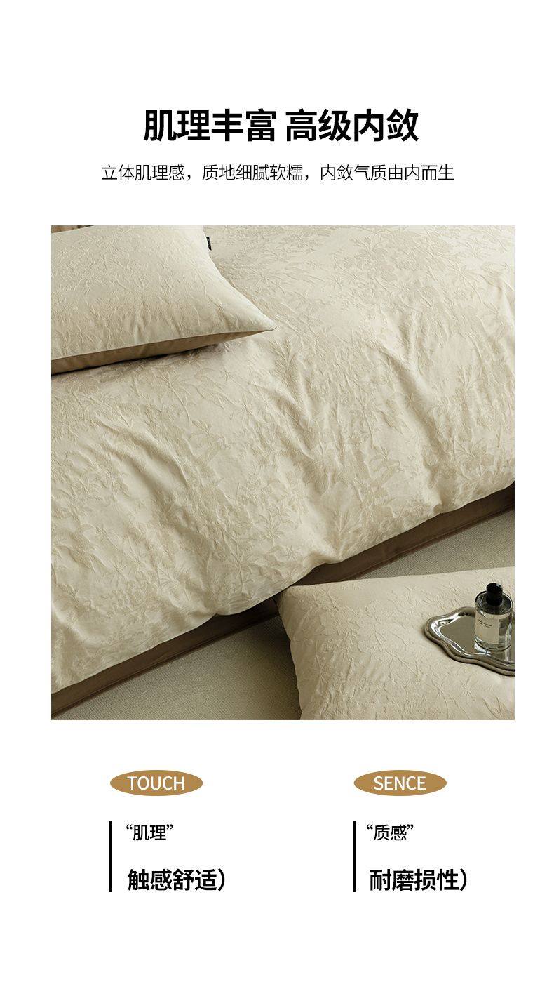(总)宜代光年 2026新款亚麻大提花贡缎磨毛四件套系列 侘寂风花型系列,斑驳-米麻,观花芷-米麻,观花芷-银灰,清玉絮-葡萄紫,清玉絮-鲜蓝,素简