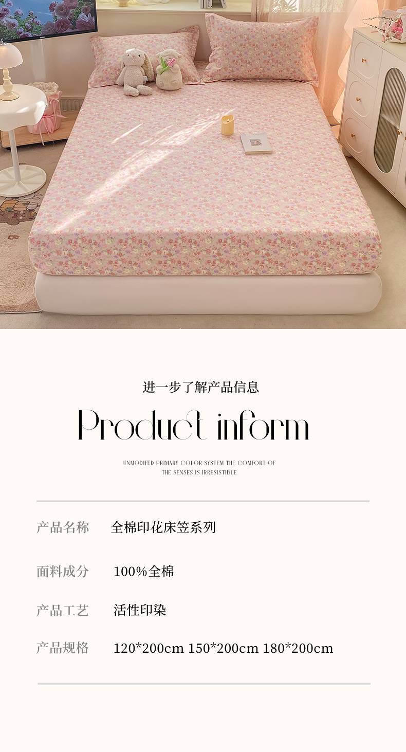商品名称:女子家纺 2026新款全棉纯棉印花小清新系列单床笠单品床笠床笠单件 樱姿米