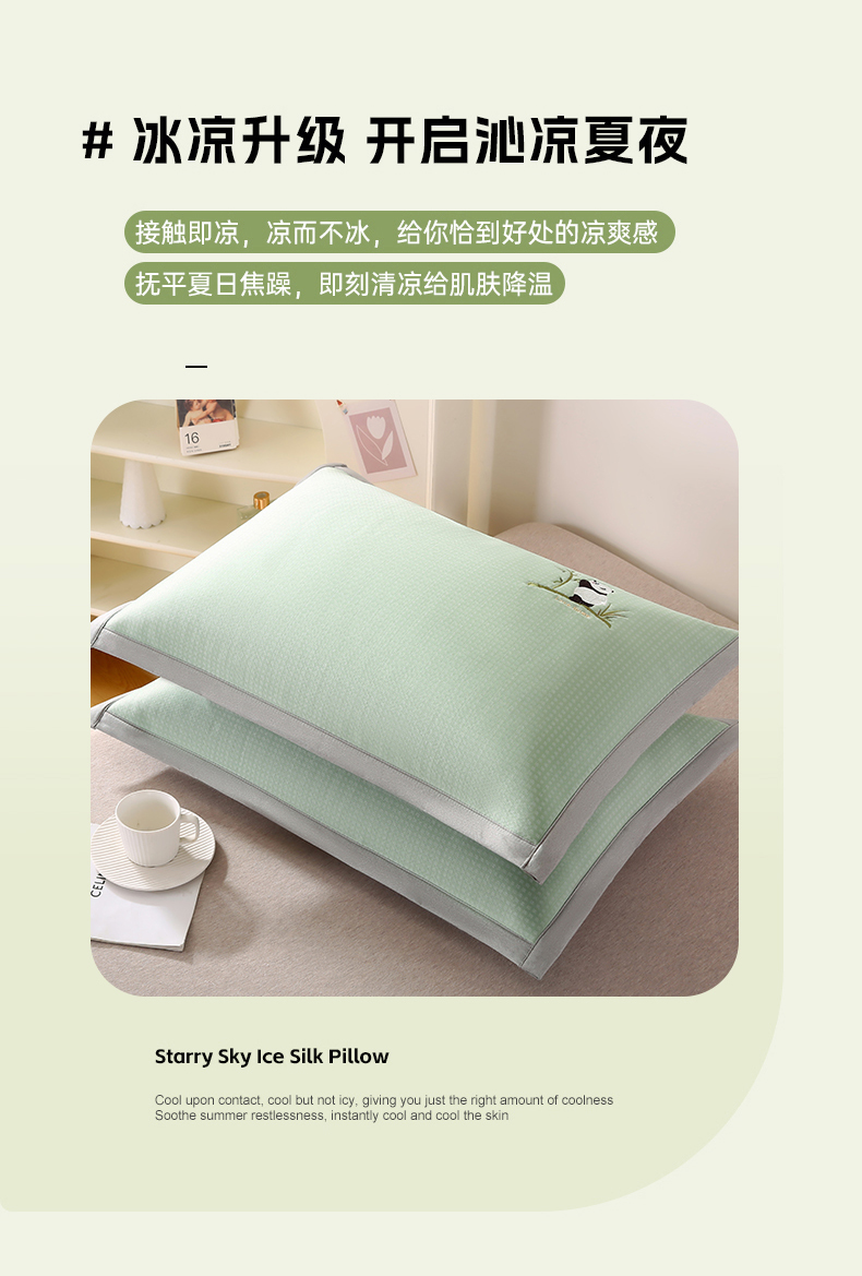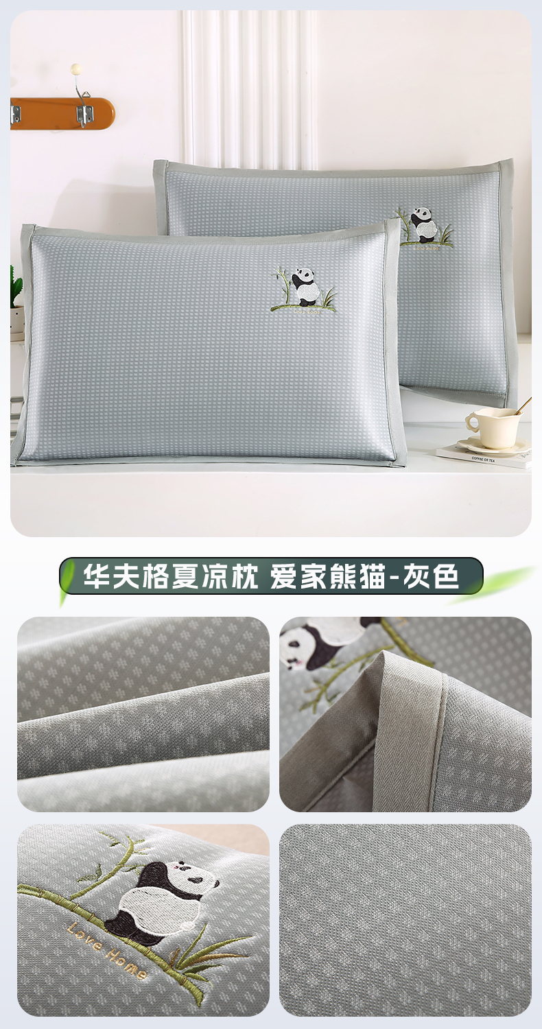商品名称:小牛席业 2026新款华夫格爱家熊猫夏凉枕套凉枕套冰丝枕套藤枕套冰藤枕套冰丝枕套竹枕套凉席枕套豆豆枕套 绿色