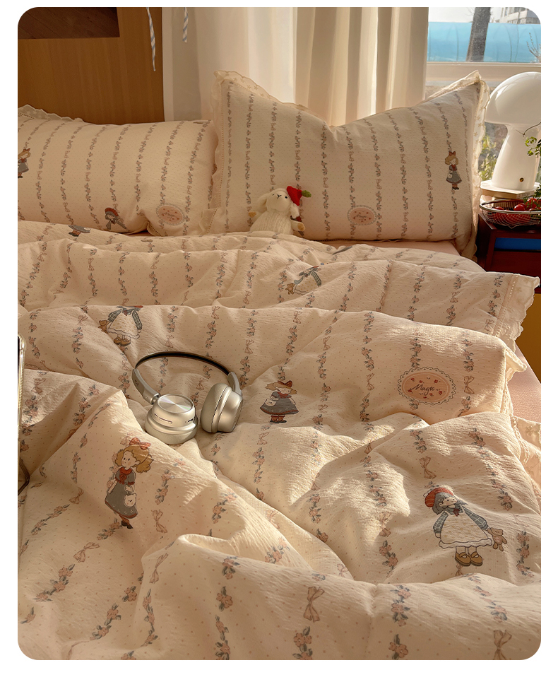 (总)梵克保罗 2026新款金豆豆床盖A类针织棉印花大版卡通床盖三四件套,鸿运当头,大头贴,粉熊和小鳄,花仙子,可爱小熊,马内多多粉,兔乖乖,兔兔和狗,旺旺人生,小虎鲸,幸运星星,要嘛有马,组合图 仅供参考