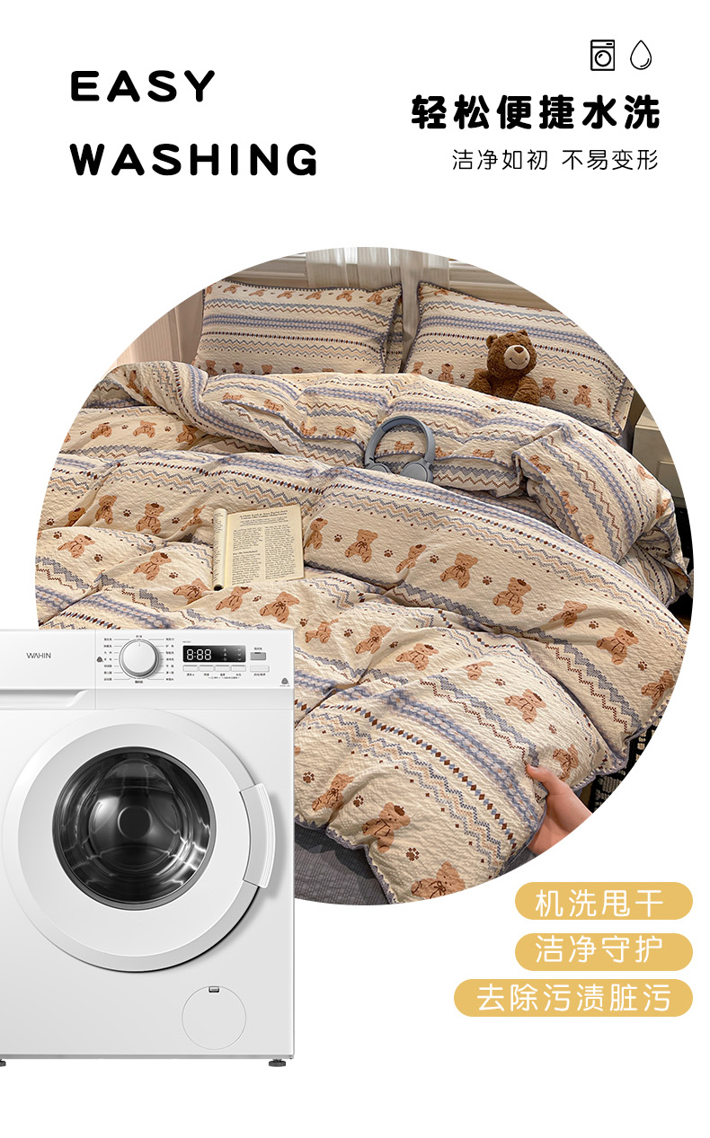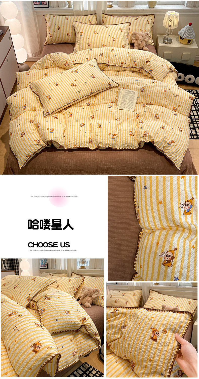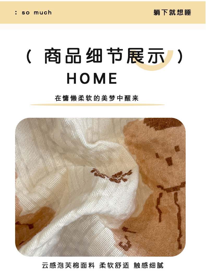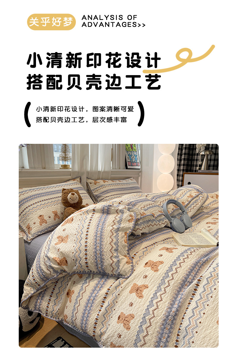 商品名称:源舍家纺 2026新款泡芙纱贝壳绣四件套 萌趣小熊
