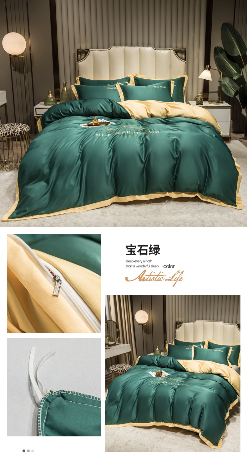 当前位置: 91家纺网 > 商品网购 > 床品套件 > 四件套 > 水洗真丝四件套 > 丝印良品 2026新款水洗真丝盛夏系列四件套单被套四件套 宝石绿