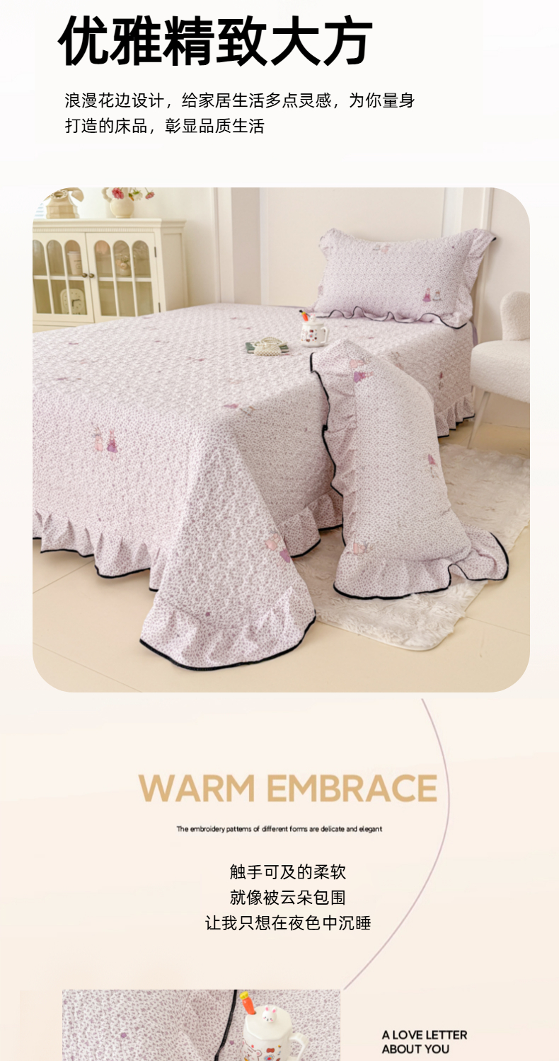 • 91家纺网 家纺一手货源 找家纺 (总)999家纺 2026新款双层纱花边床盖单件加厚夹棉云感皱皱纱花边床单三件套四季跑量(提供买家秀),初见【花边款】,春天里【花边款】,蝶恋花【花边款】,蝴蝶梦【花边款】,花影【花边款】,静初【花边款】,兰黛【花边款】,漫花【花边款】,木兮【花边款】,慕情【花边款】,浅画【花边款】,寻梦粉【花边款】,寻梦紫【花边款】,樱桃格【花边款】,紫韵【花边款】