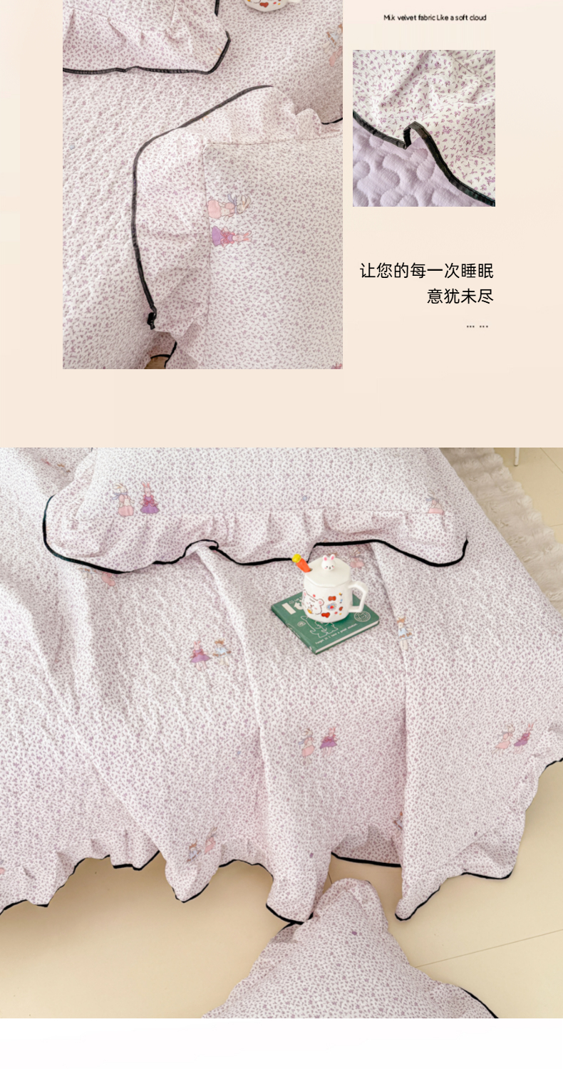 • 91家纺网 家纺一手货源 找家纺 999家纺 2026新款双层纱花边床盖单件加厚夹棉云感皱皱纱花边床单三件套四季跑量(提供买家秀) 寻梦紫【花边款】
