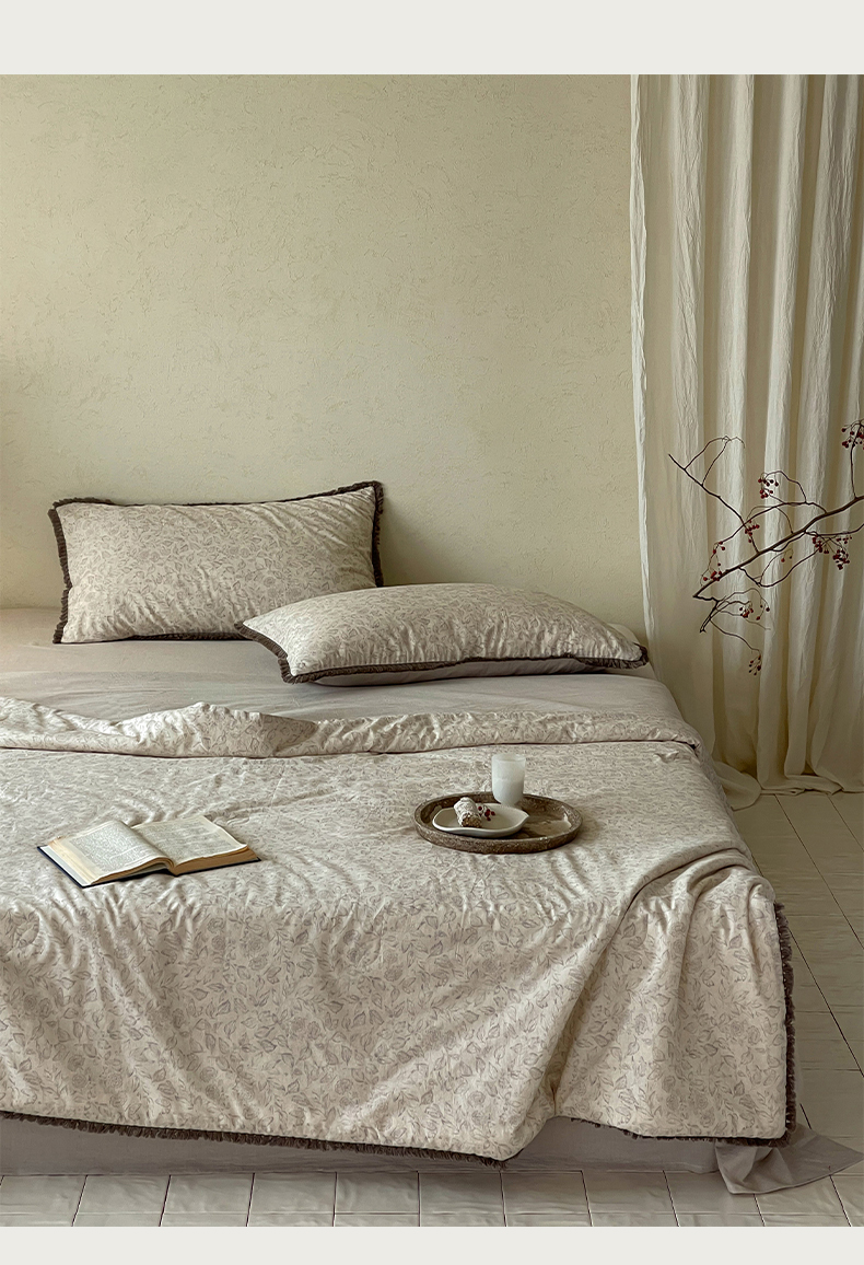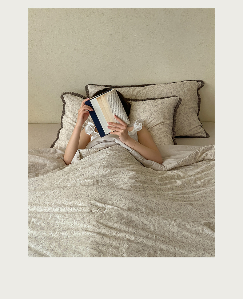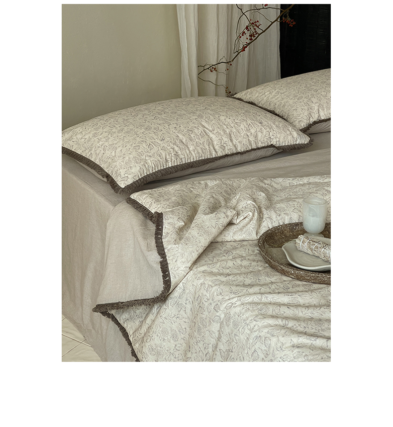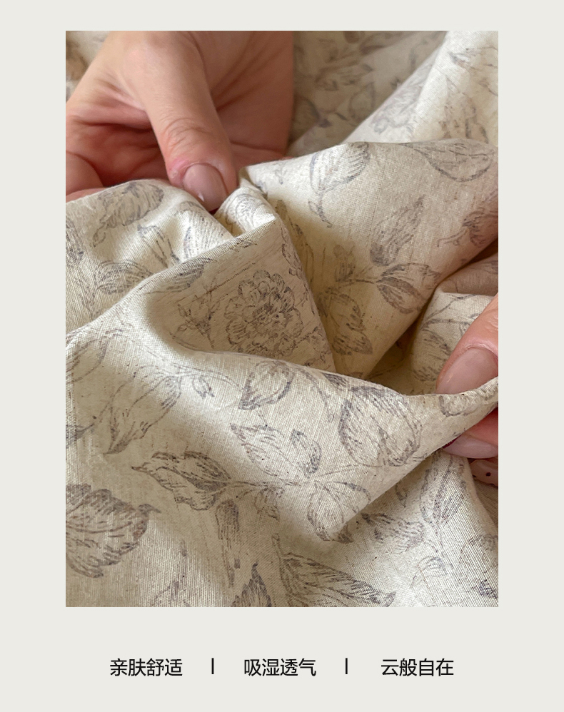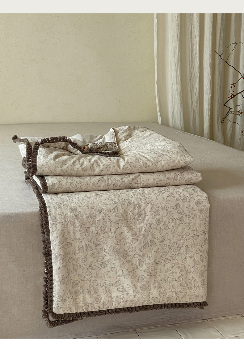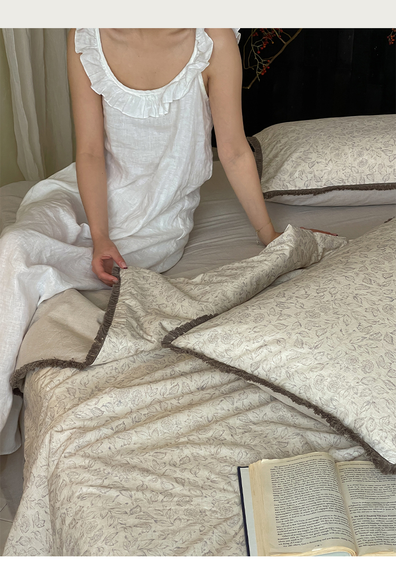 • 91家纺网 家纺一手货源 找家纺 一加一 2026新款A类棉麻透气提花花边凉感夏被夏凉被空调被四件套棉麻叙 晚晴-灰
