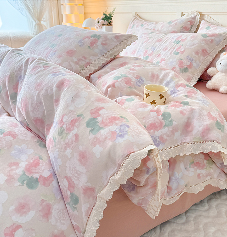 当前位置: 91家纺网 > 商品网购 > 床品套件 > 四件套 > 全棉普通四件套 > 疆东 【疆东】2026韩版蕾丝花边纯棉全棉双层纱四件套印花纯棉四件套法式赫本木耳花边全棉公主双层纱四件套 春日女孩