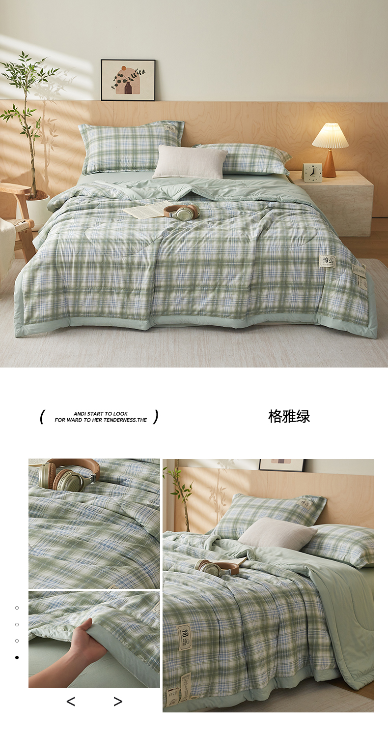 • 91家纺网 家纺一手货源 找家纺 帕芬鸟家纺 2026新款100%棉花夏凉被空调被夏被四件套-格子系列 绿小格