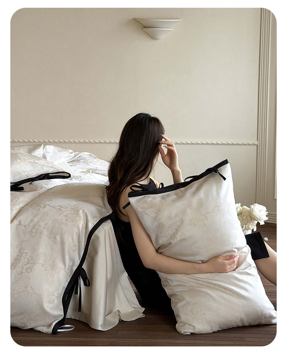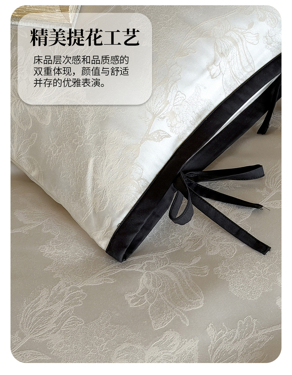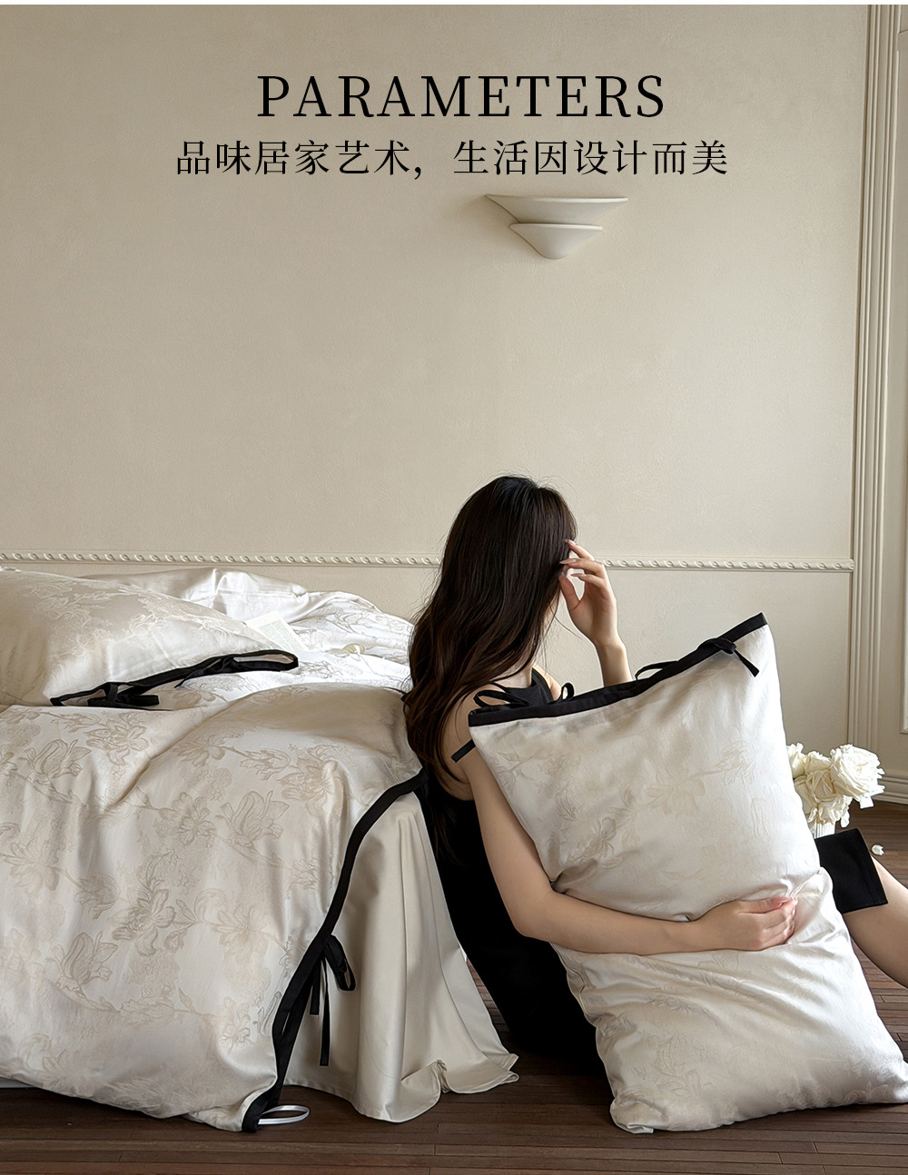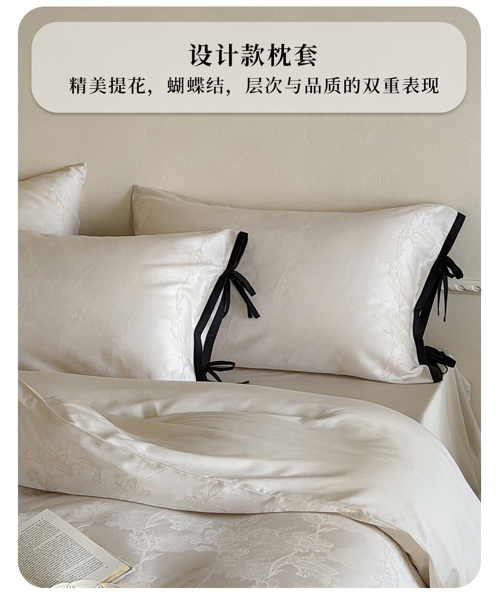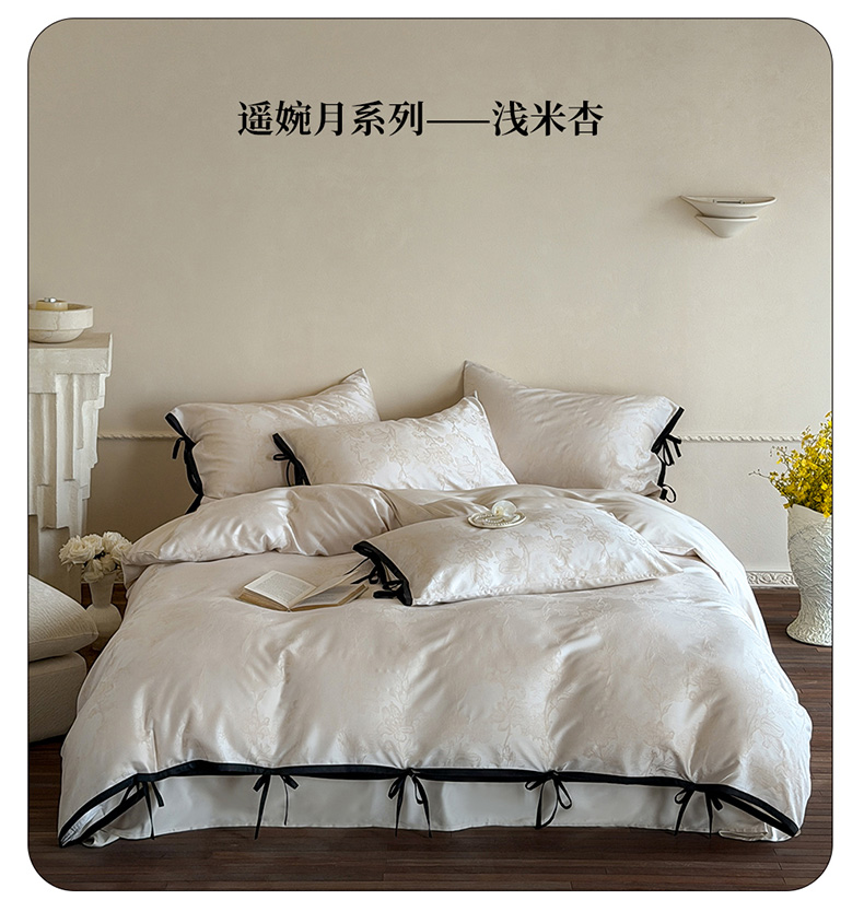 商品名称:爱缦 2026新款100s天丝棉色织提花四件套-遥婉月系列 浅米杏